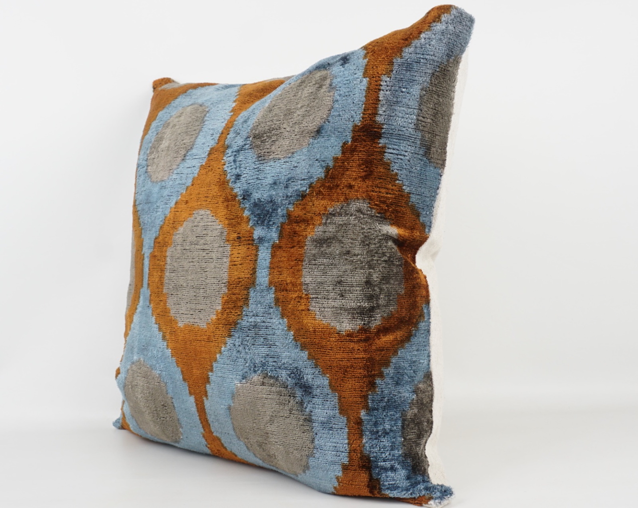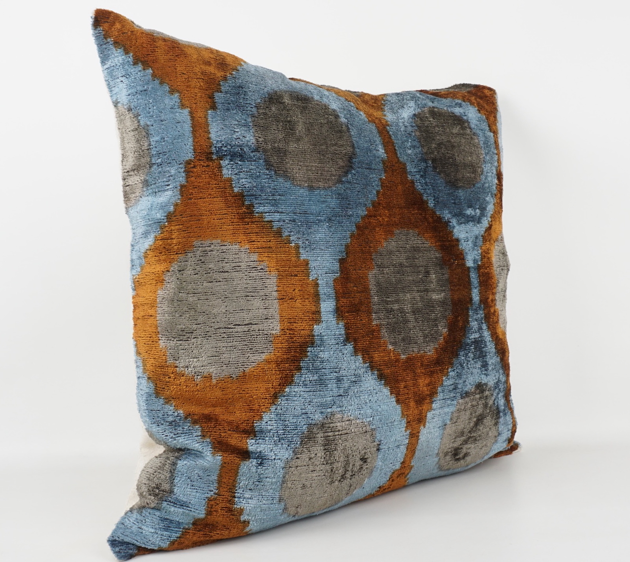 Produktinformationen "Kissenbezug Seide Ornamente rost/blau/grau 50x50 cm"