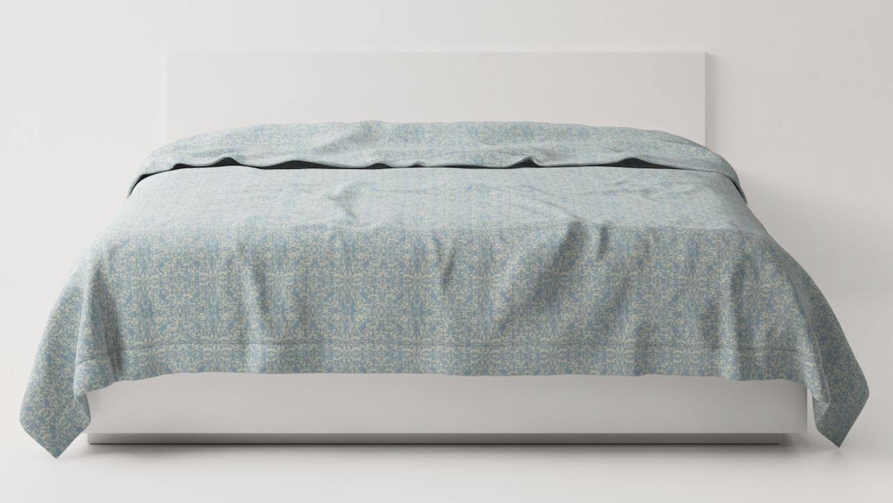 Der Stoff des schönen Bettüberwurfs ist durch die Seitennähte mit dem Vlies verbunden. Auf Anfrage kann der Bettüberwurf auch mit Punktabsteppungen gearbeitet werden, wodurch Ober- und Unterstoff an mehreren Stellen des Plaids mit dem Vlies fixiert werden. Der Besatz an den Rändern des Bettüberwurfs wird aus dem Stoff der Vorderseite genäht und ist 7 cm breit. Auf Wunsch können Vorder- und Rückseite der Tagesdecke in verschiedenen Dessins und Farben gefertigt werden.