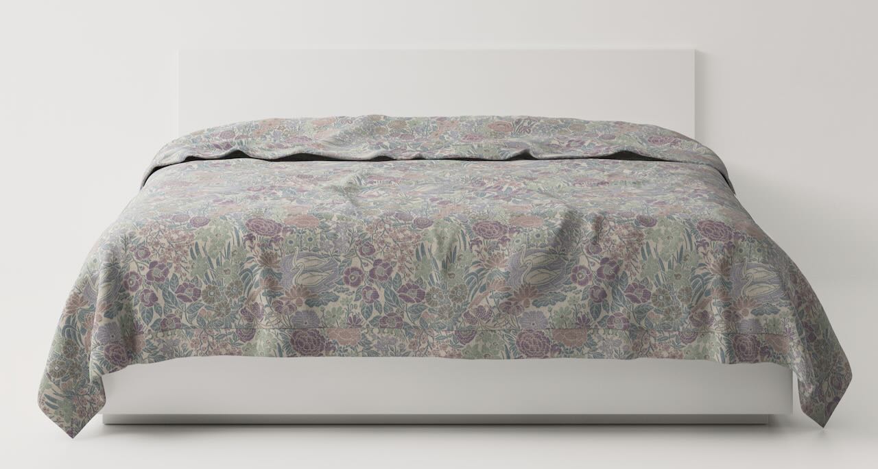 Der edle Bettüberwurf von Leitner Leinen wird in diesem fein gewebten Dessin Jeju Gardens in der gewählten Farbe und Größe nach Maß gefertigt. Zusätzlich zu den gezeigten Maßen sind auf Anfrage fast alle beliebigen Maße möglich.