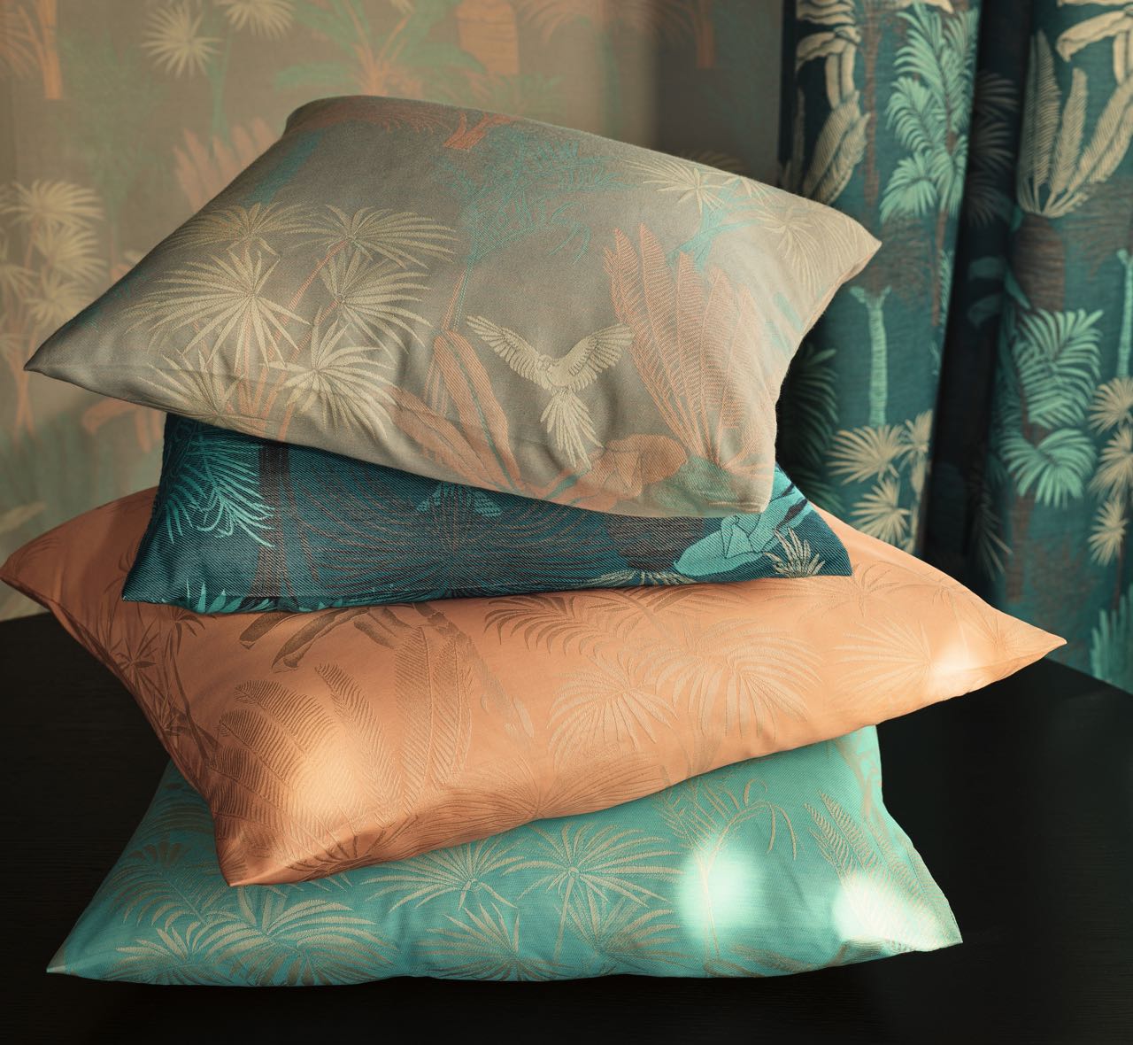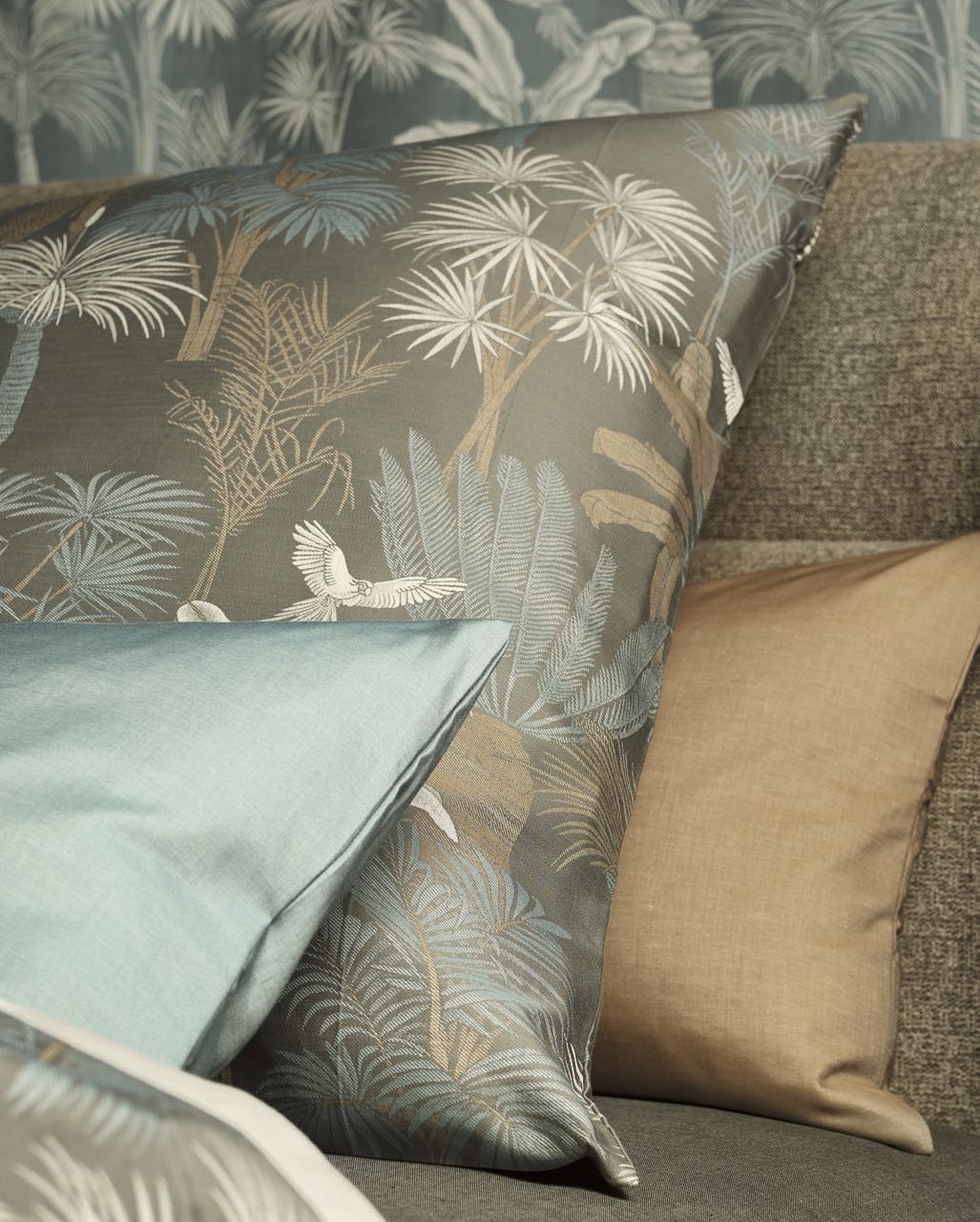 Dieser edle Kissenbezug im Dessin Eden aus feiner Baumwolle von Leitner Leinen entführt in die exotische Welt des Dschungels. Das fein gewebte Kissen zeigt die Schönheit und Farbenpracht des Dschungesl mit seinem exotischen Blattwerk und prächtigen Papageien. Das dekorative Kissen setzt mit diesem edlen Dessin paradiesische Akzente.