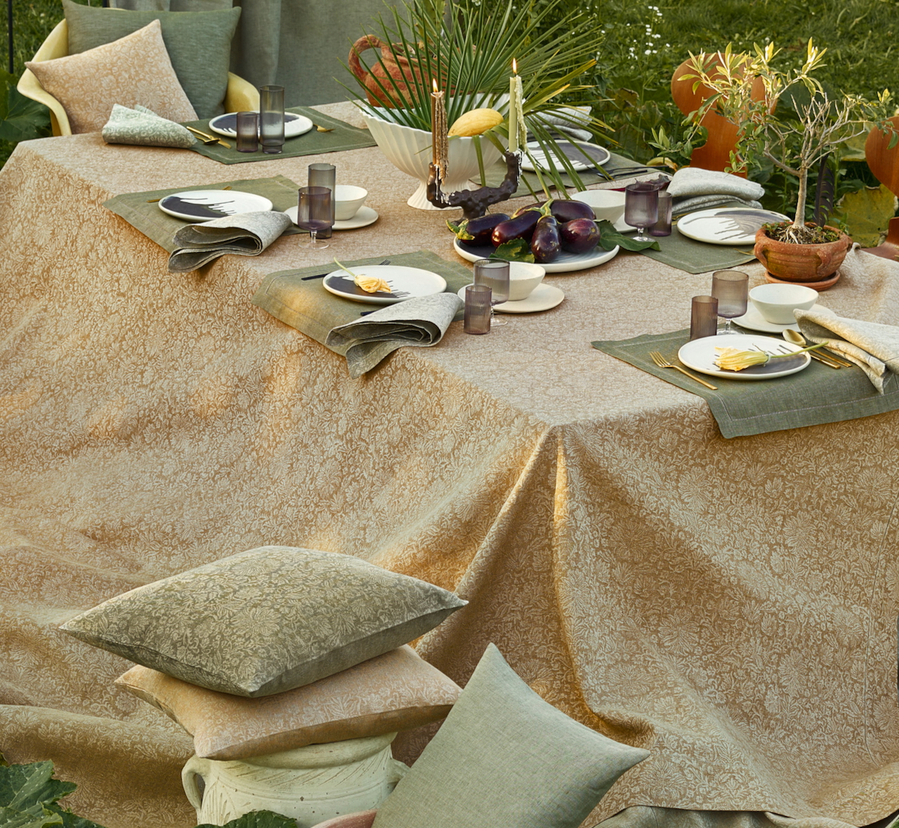 Die hochwertige Tischdecke von Leitner Leinen wird in diesem edlen Dessin Fleur Royale in der gewählten Farbe und Größe nach Maß gefertigt. Zusätzlich zu den gezeigten Maßen sind auf Anfrage fast alle beliebigen Maße möglich.