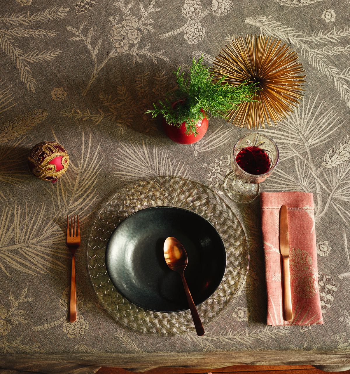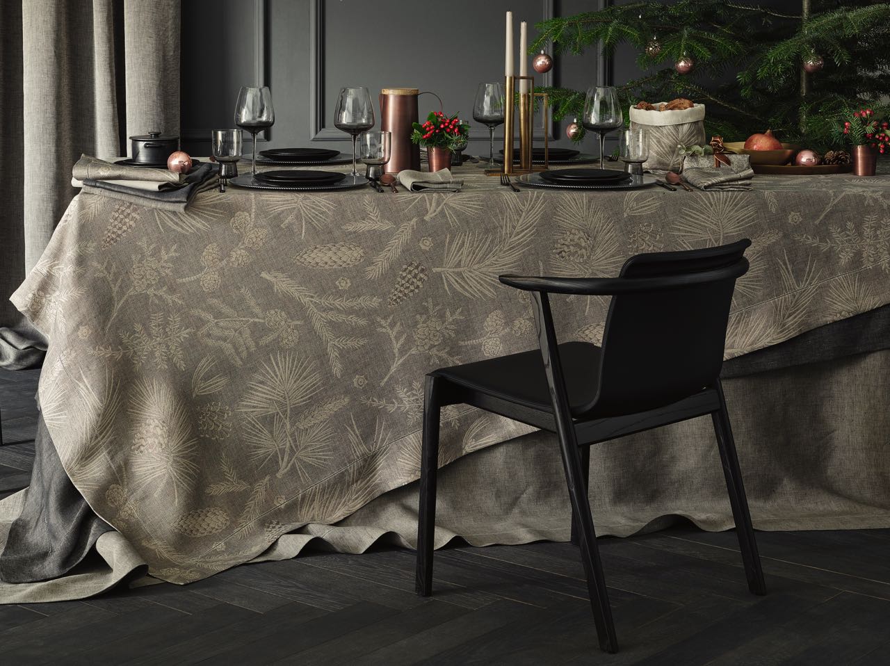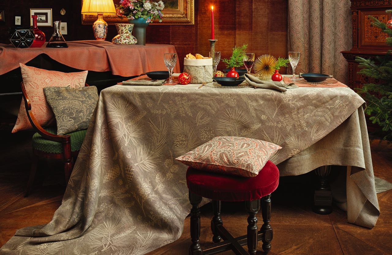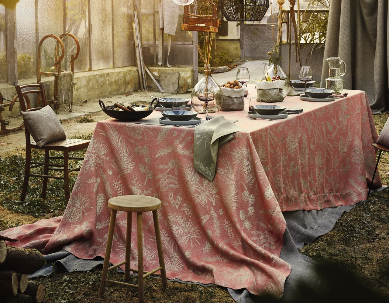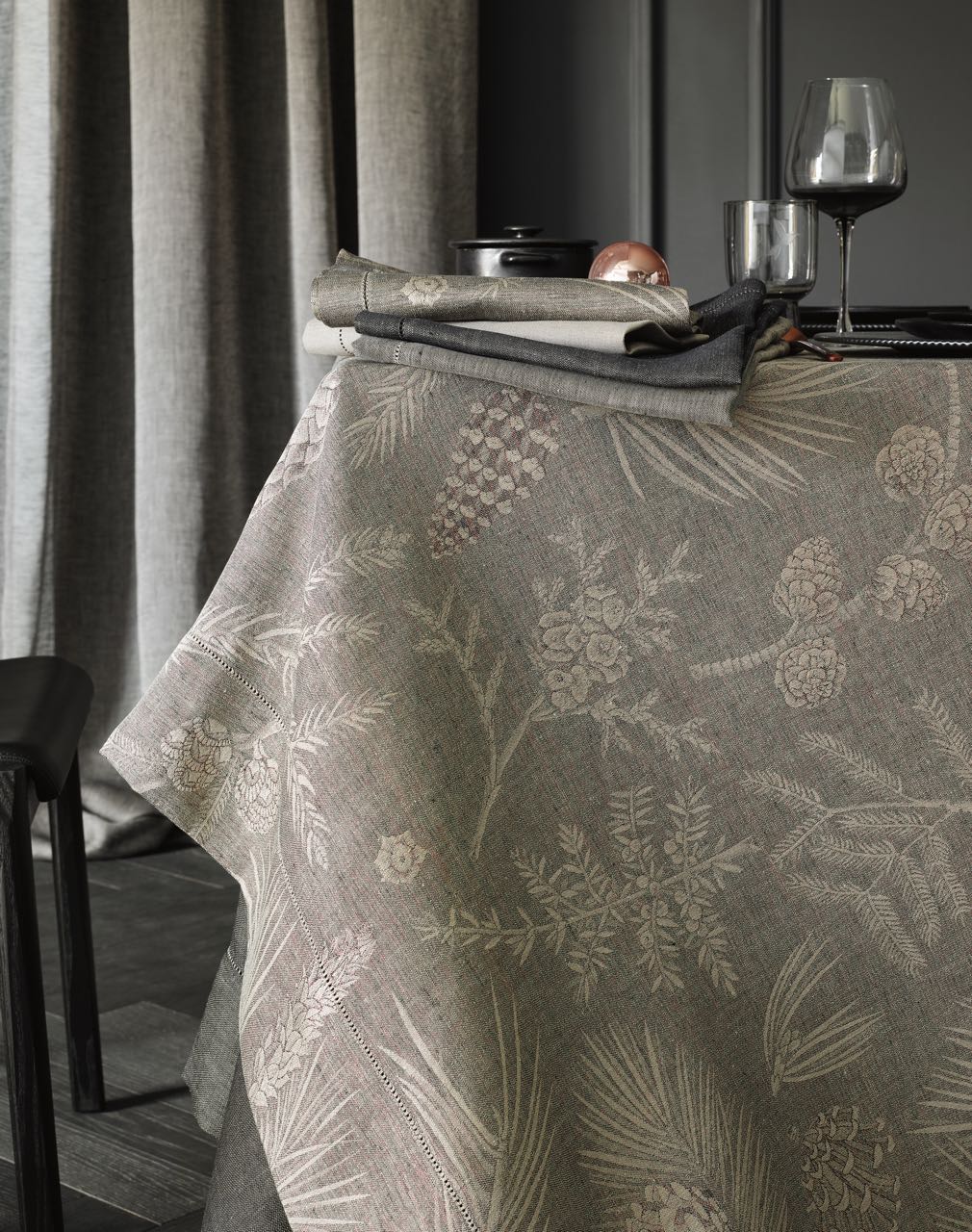 Diese kunstvoll gewebte Tischdecke von Leitner Leinen im Dessin Foresta aus Reinleinen zeigt den Reichtum des Waldes. Fein gewebte Zweige, Zapfen und Äste verschiedener Gehölzarten kommen durch die harmonisch aufeinander abgestimmten Farben besonders schön zur Geltung und verleihen der hochwertigen Tischdecke eine edle Optik in zurückhaltender Eleganz.