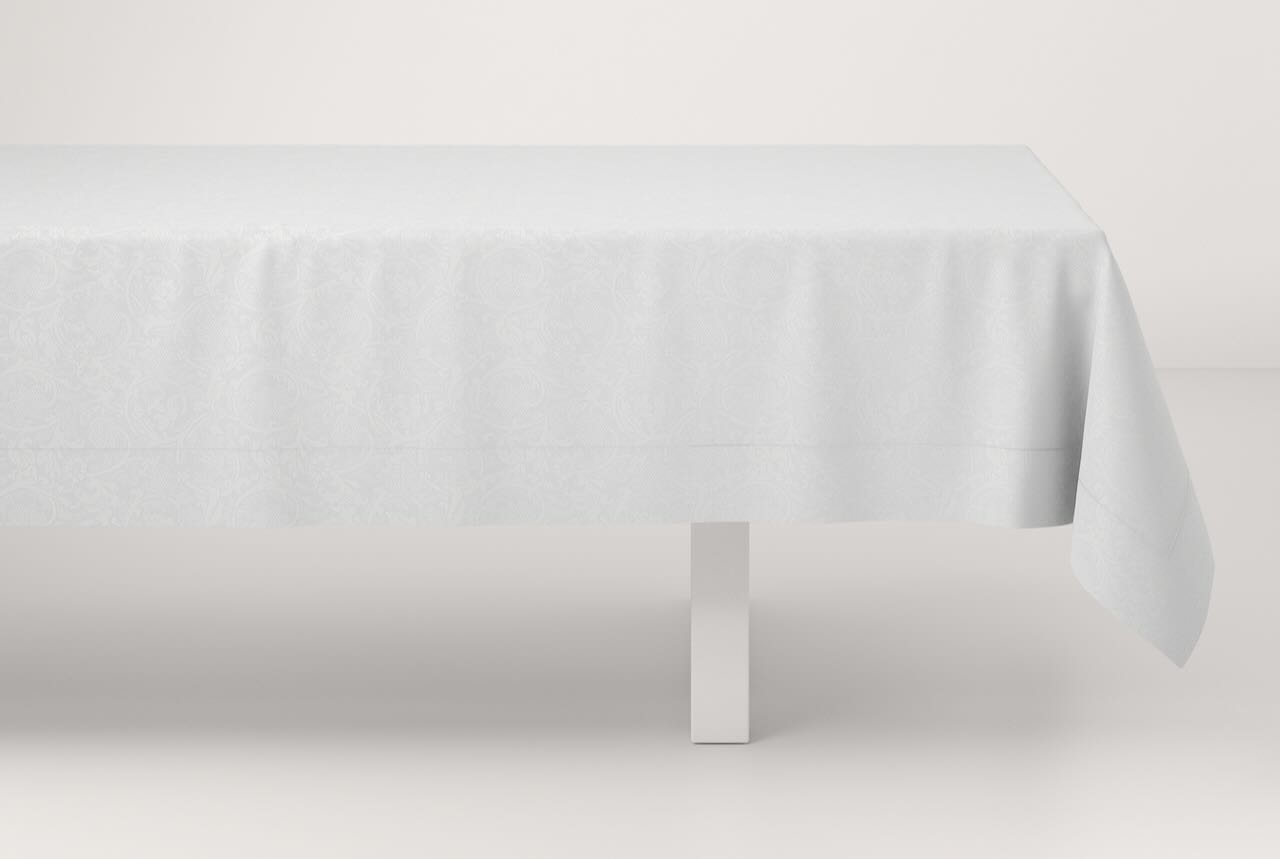 Die hochwertige Tischdecke von Leitner Leinen wird in diesem edlen Dessin Rocaille in der gewählten Farbe und Größe nach Maß gefertigt. Zusätzlich zu den gezeigten Maßen sind auf Anfrage fast alle beliebigen Maße möglich.