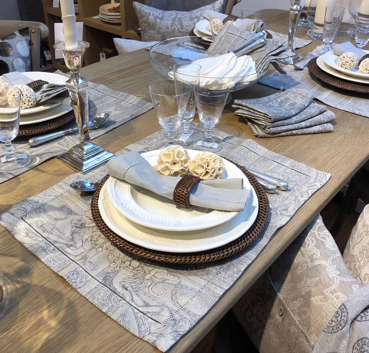 Das feine Tischset von Leitner Leinen wird in diesem edlen Dessin Palazzo in der gewählten Farbe und Größe nach Maß gefertigt. Zusätzlich zu den gezeigten Maßen sind auf Anfrage fast alle beliebigen Maße möglich.