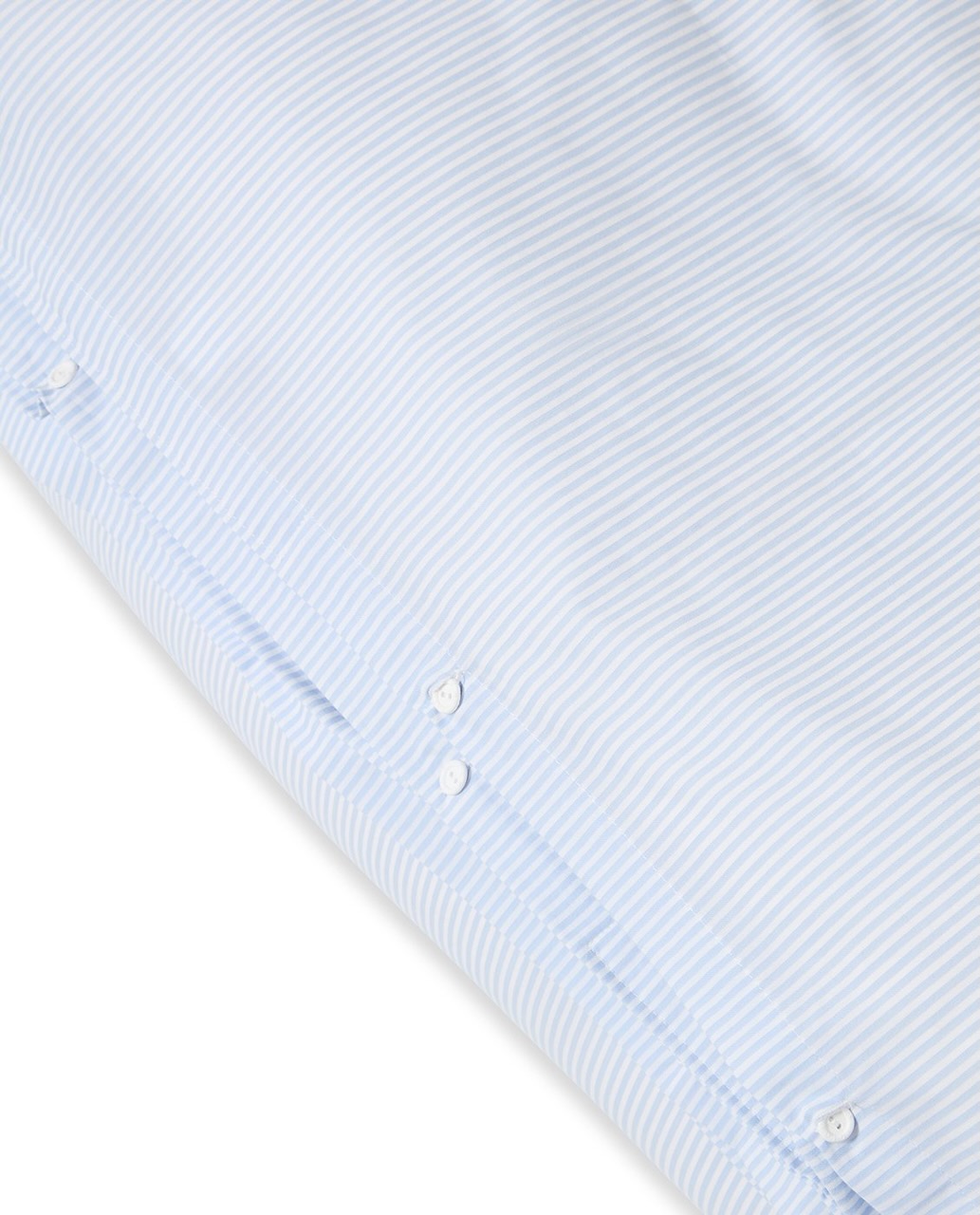 Diese edle Bettwäsche von Lexington wird aus feinem Baumwollsatin gewebt. Sie ist wunderbar weich und anschmiegsam und perfekt für schöne Träume. Die exklusive Bettwäsche mit dem feinen Streifenmuster ist in schönem Hellblau-Weiß gehalten und hat einen feinen edlen Glanz. Sie verleiht dem Schlafzimmer eine ganz besondere Optik. Der Kissenbezug hat an zwei Seiten einen Stehsaum und einen klassischen Hotelverschluss, der Bettbezug hat farblich abgestimmte Kautschuk-Knöpfe.
