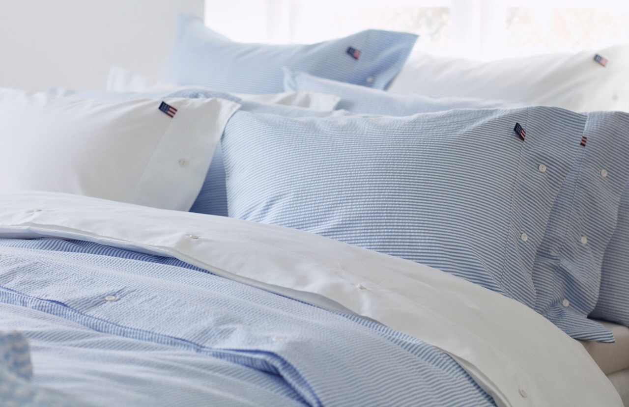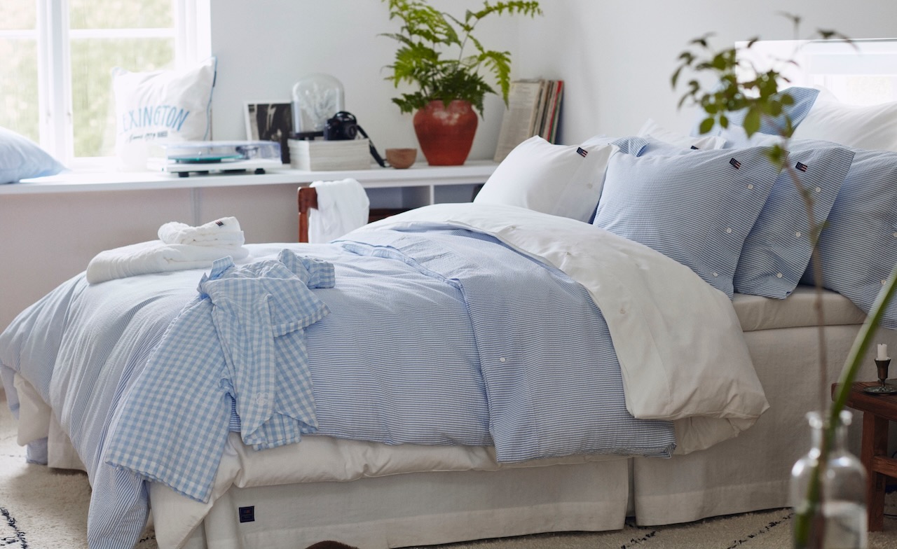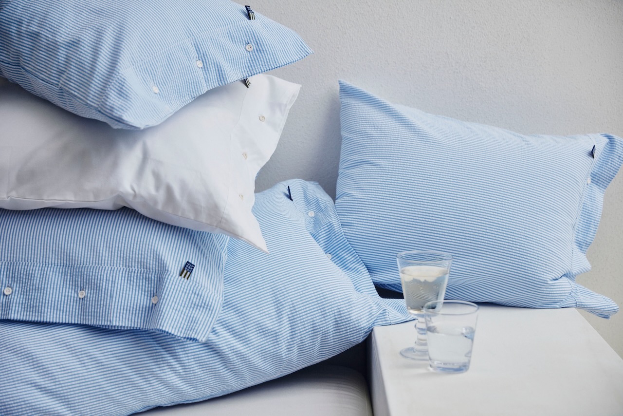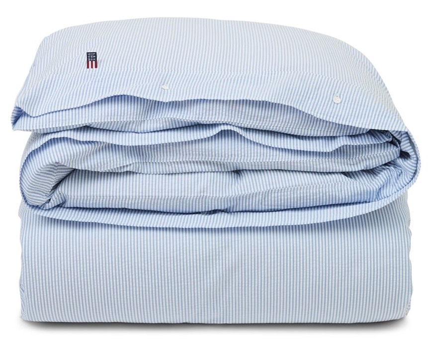 Diese schöne Bettwäsche von Lexington hat eine sportlich frische Optik. Durch das schöne Seersucker-Gewebe ist die edle Bettwäsche wunderbar leicht und angenehm im Gebrauch. Der weiss-hellblaue Streifen ist sportlich klassisch und setzt schöne frische Akzente im Schlafbereich. Kissenbezug und Bettbezug haben die typischen weißen Kautschuk-Knöpfe als Verschluß.
