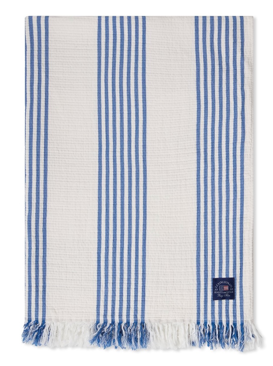 Dieses dekorative Plaid von Lexington ist der perfekte Begleiter für kühle Stunden auf Terrasse, im Garten oder auf dem Sofa. Die schöne Decke wird aus weicher Baumwolle gefertigt und setzt durch das blau-beige Streifen- und Karonmuster schöne frische Akzente. Das hochwertige Plaid von Lexington hat an der Ober- und Unterkante als Abschluss dekorative Fransen.
