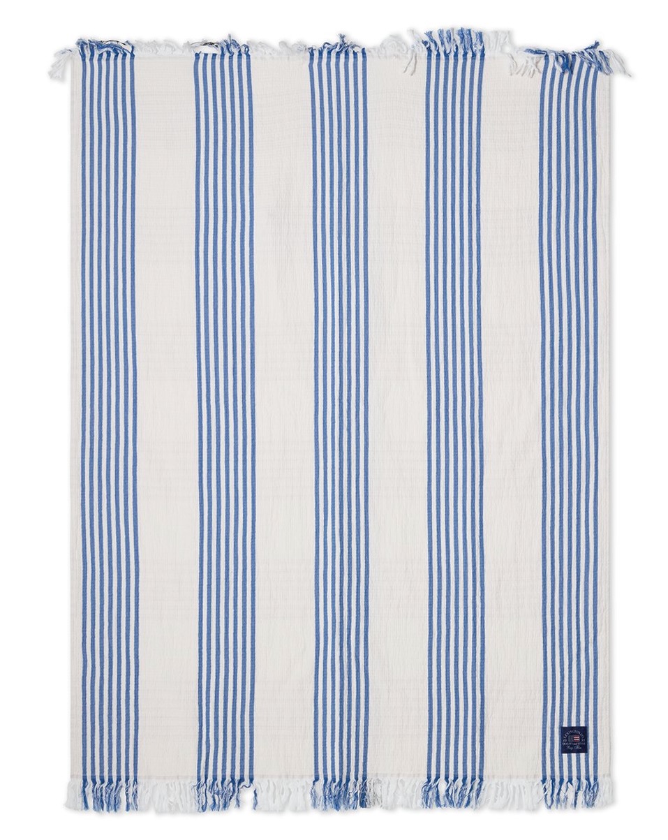 Produktinformationen "Lexington Decke Streifen/Karo Cotton blau/weiß/beige"