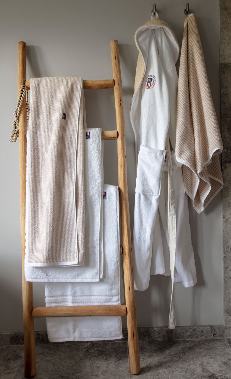 Die hochwertigen Handtücher von Lexington aus weichem Frottee werden aus feiner gekämmter Baumwolle hergestellt. Durch die besondere Qualität sind sind die exklusiven Handtücher sehr anschmiegsam und saugfähig. An den schmalen Seiten sind die schönen Handtücher von Lexington mit einem weissen Band eingefasst, was den edlen Handtüchern eine sportliche Note verleiht. Mit den klaren beige-weissen Streifen setzt diese tolle Handtuch-Serie schöne frische Akzente im Bad.