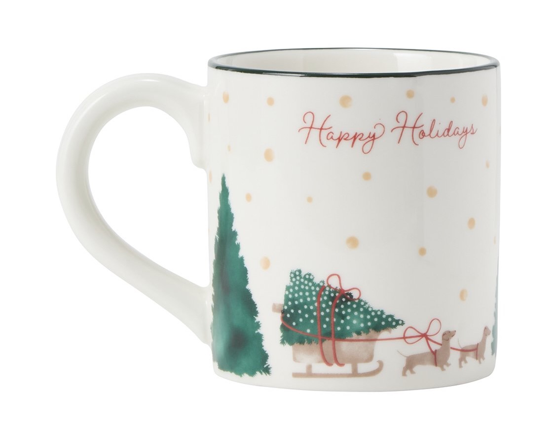 Dieser tolle Becher von Lexington bringt mit seinem schönen Winter-Motiv einen Hauch von Weihnachten auf Tisch und Tafel. Der dekorative Henkelbecher setzt durch das winterliche Hausmotiv mit Tannenbäumen und Schneeflocken ganz besondere Akzente bei jeder Tischdekoration.
