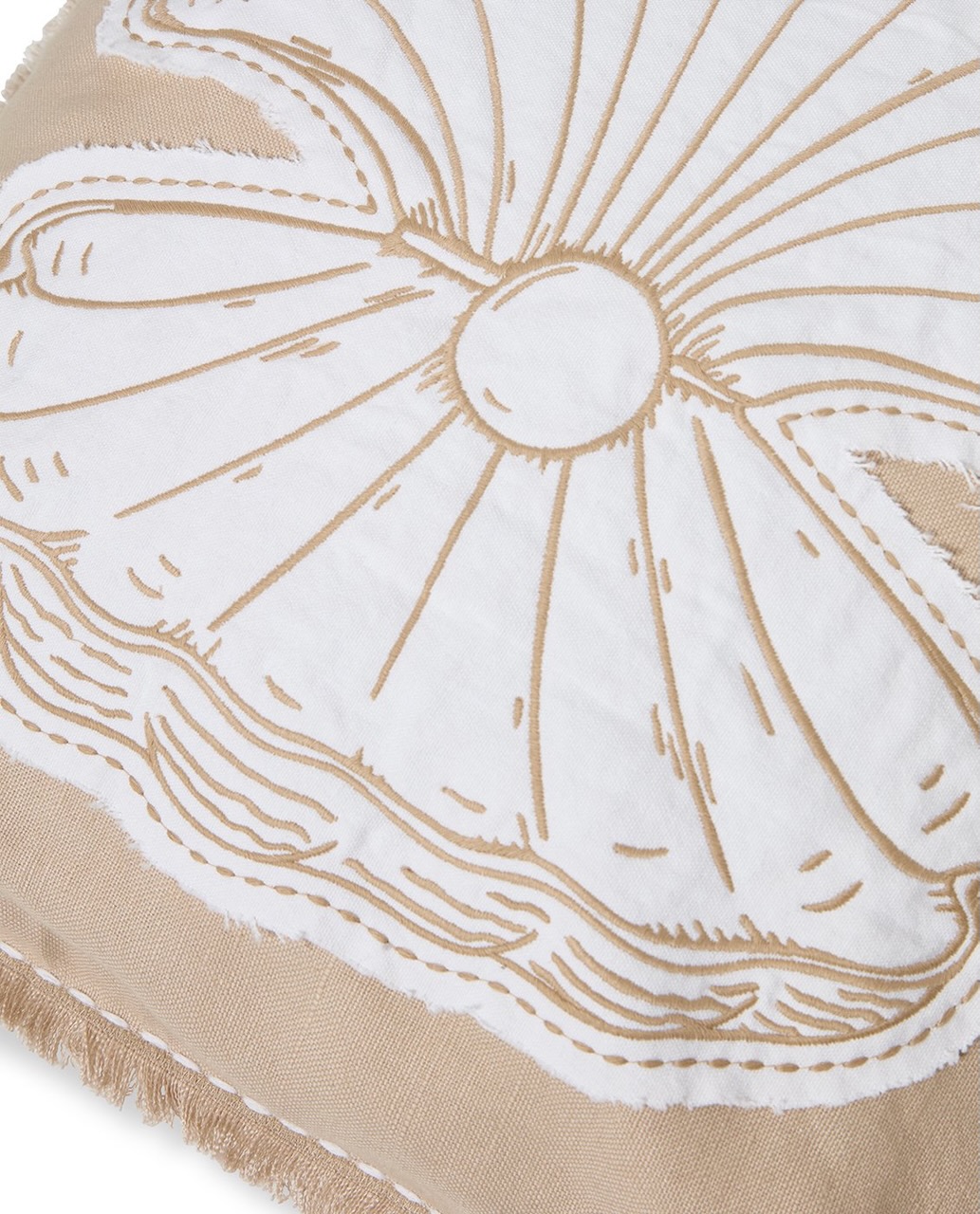 Dieses tolle Deko-Kissen von Lexington besticht durch das aufgenähte weiß-beige Muschel-Motiv auf der beige farbenen Frontseite. Die edle Farbgebung des Kissens setzt feine frische Akzente und und verleiht dem Raum eine behagliche Atmosphäre. Das schöne Kissen wird durch umlaufende Fransen und einer groben weißen Naht eingefasst. Mit einem schmalen Reißverschluss wird das hochwertige Kissen geschlossen.