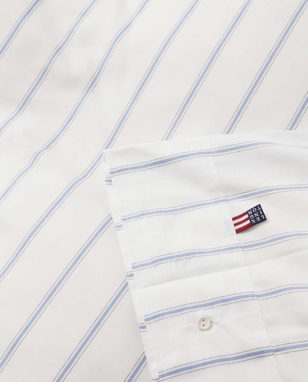 Diese edle Bettwäsche von Lexington hat eine schöne frische Optik. Sie wird aus einer hochwertigen Baumwoll-Lyocell-Mischung gewebt und sorgt durch ihre weiche, glatte Oberfläche und der edlen Fasern für ein angenehmes Schlafklima. Die typischen Kautschuk-Knöpfe geben der exklusiven Bettwäsche eine sportliche Note. Durch die Kombination aus schönem Blau/Weiß, dekorativem Streifenmuster und der hervorragenden Qualität ist diese edle Bettwäsche ein unschlagbares Highlight für jedes Schlafzimmer.
