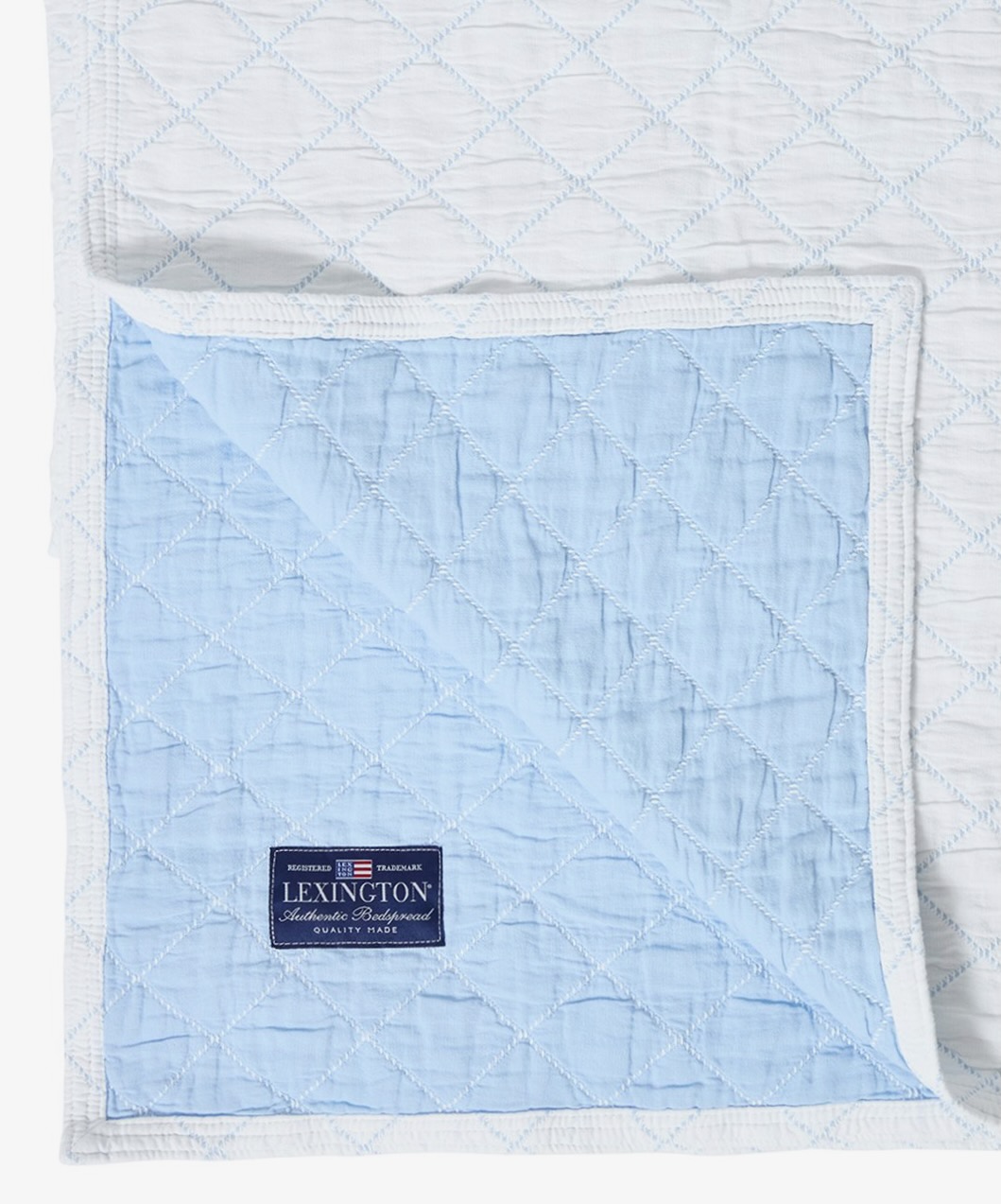 Diese weiß-blaue Tagesdecke von Lexington wird aus hochwertiger Bio-Baumwolle hergestellt und ist mit einer dekorativen Karo-Steppung versehen. Die dekorative Tagesdecke ist beidseitig verwendbar und verleiht jedem Bett und jedem Sofa eine ganz besondere Optik.
