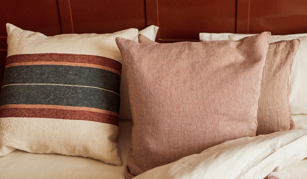 Diese hochwertige Bettwäsche von Libeco ist edel und lässig. Durch die warmen rotbraunen und naturfarbenen Streifen und dem edlen Glanz setzt diese schöne Bettwäsche ganz besondere Akzente im Schlafzimmer. Das vorgewaschene Leinen ist bei der hochwertigen Bettwäsche besonders weich und angenehm im Gebrauch. Die Twillbindung des Gewebes verleiht der schönen Bettwäsche eine feine Note. Aufgrund der hohen Feuchtigkeitsregulierung und des guten Temperaturausgleichs von Leinen, sorgt diese exklusive Bettwäsche von Libeco für ein besonders angenehmes Schlafklima. Der Kissenbezug hat einen schlichten Hotelverschluß, der Bettbezug ist mit einer verdeckten Knopfleiste gefertigt.