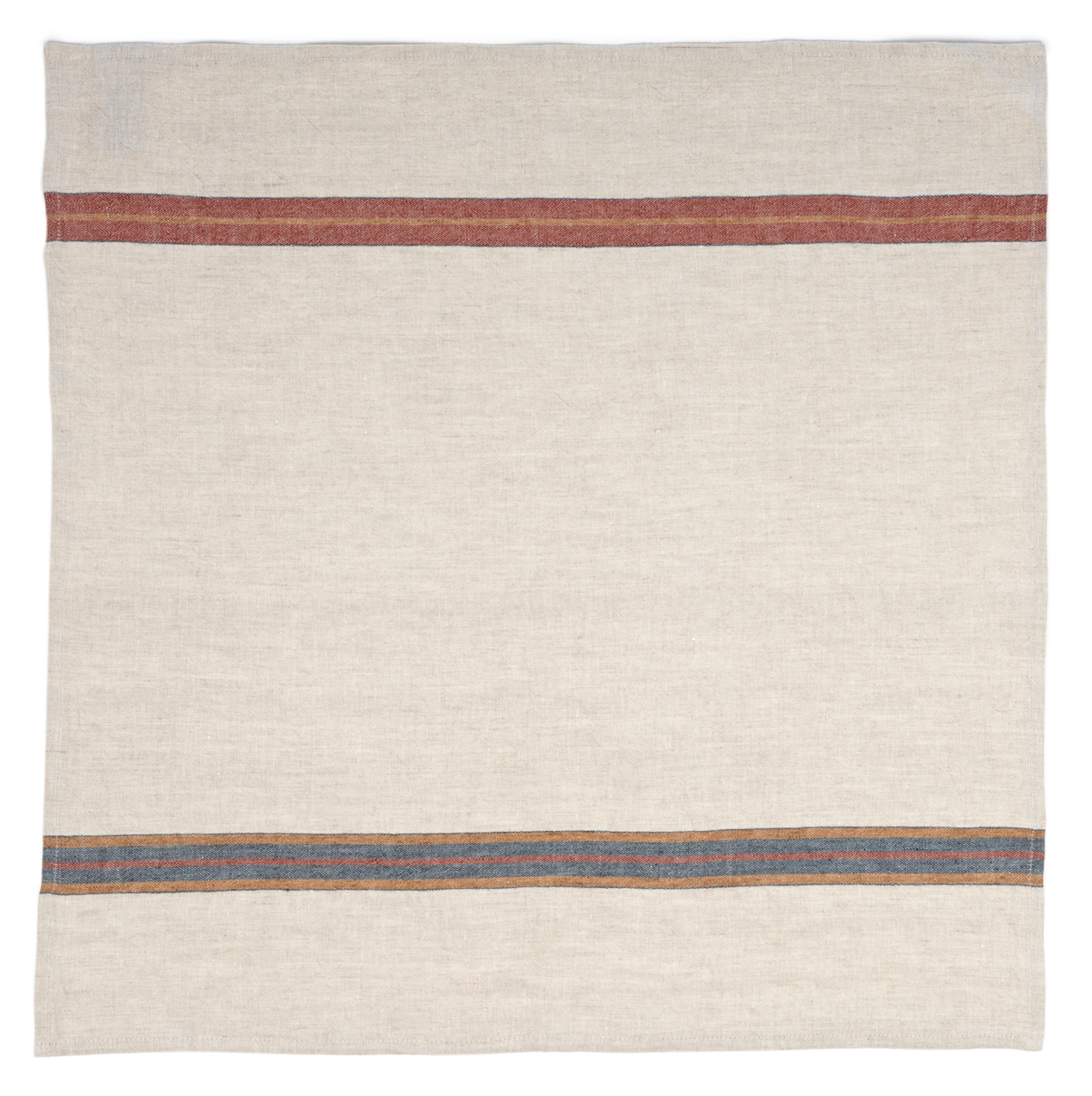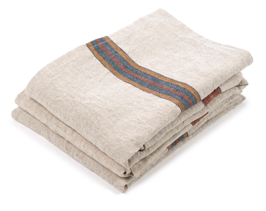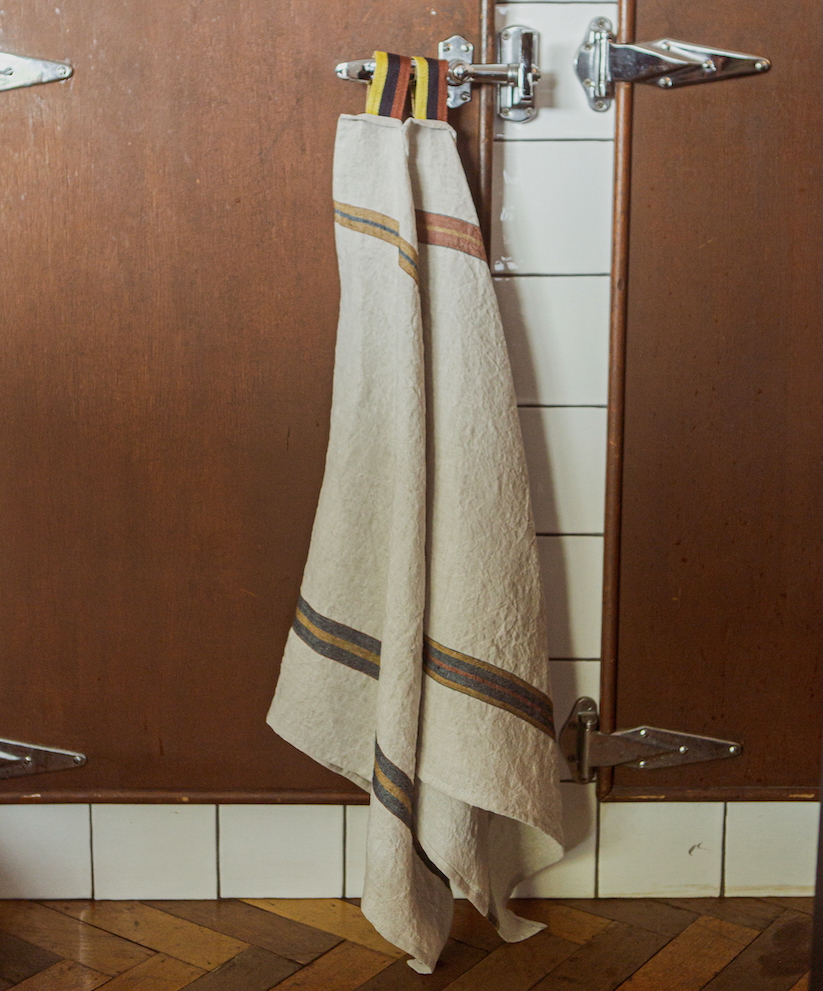 Dieses edle Geschirrtuch von Libeco aus reinem Leinen hat eine schöne lässige Optik. Mit seinen braunen und blauen Streifen auf warmem naturfarbenem Grund ergibt sich bei diesem hochwertigen Küchentuch ein sehr dekoratives Farbspiel, das schöne Akzente in der Küche setzt. Das hochwertige Geschirrtuch ist mit einem schlichten Saum eingefasst und hat einen breiten gestreiften Aufhänger.