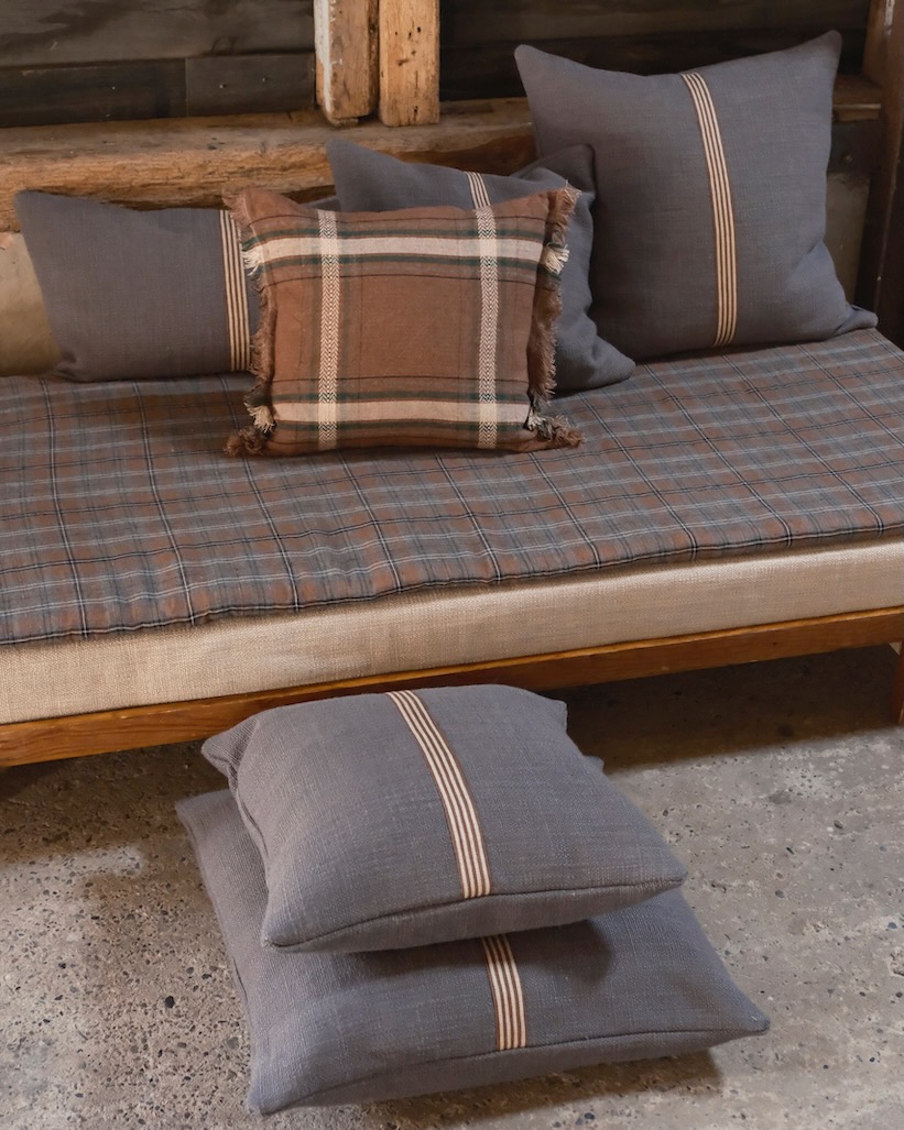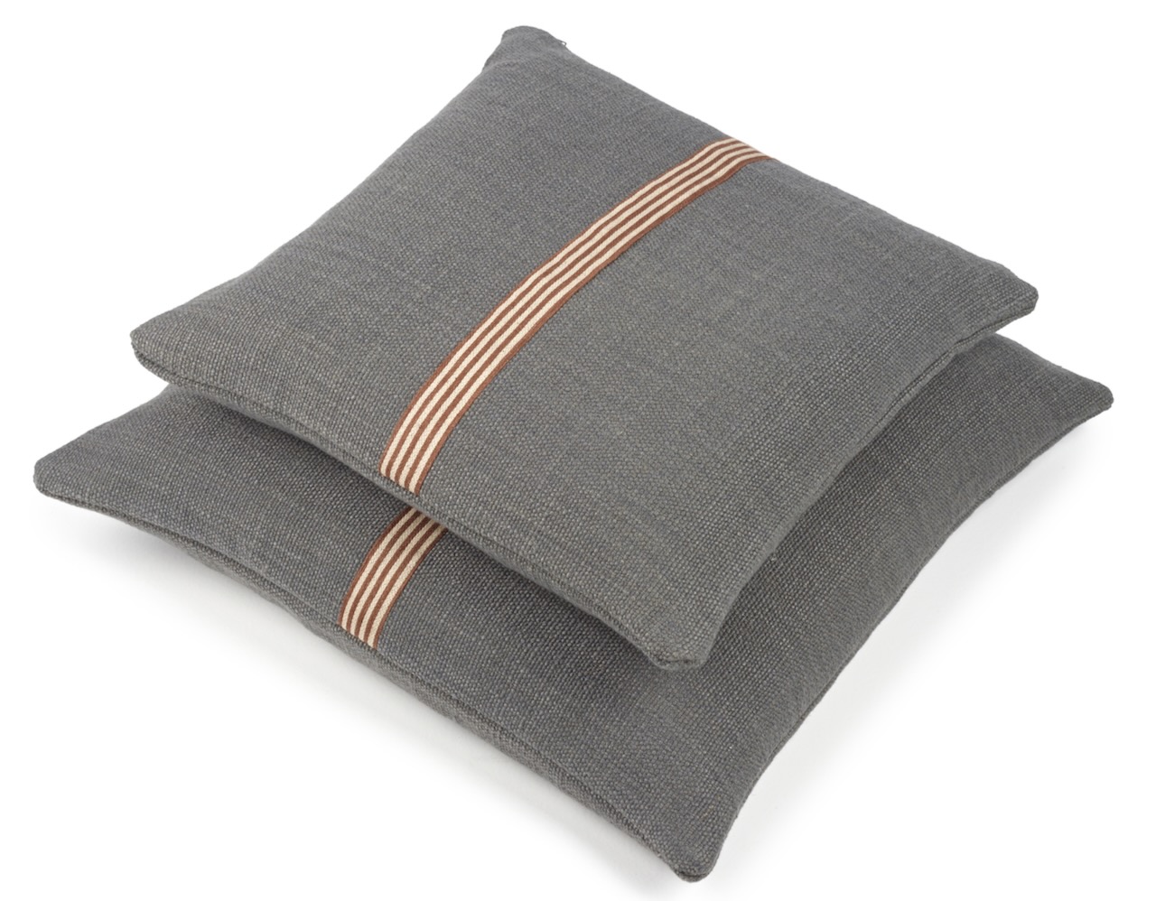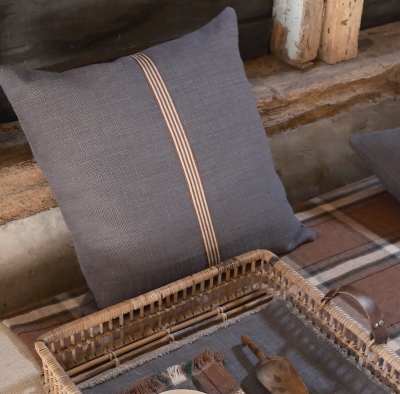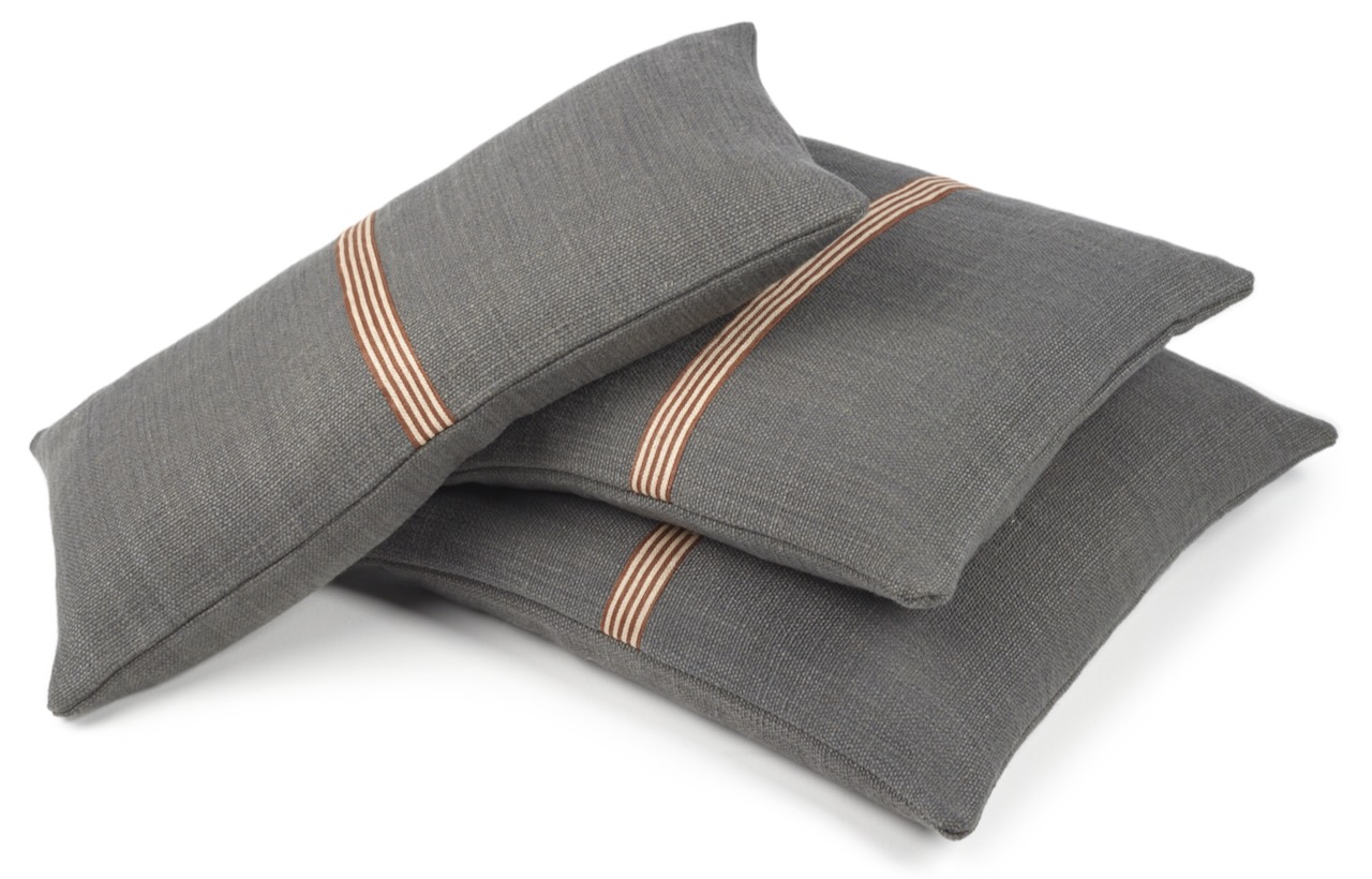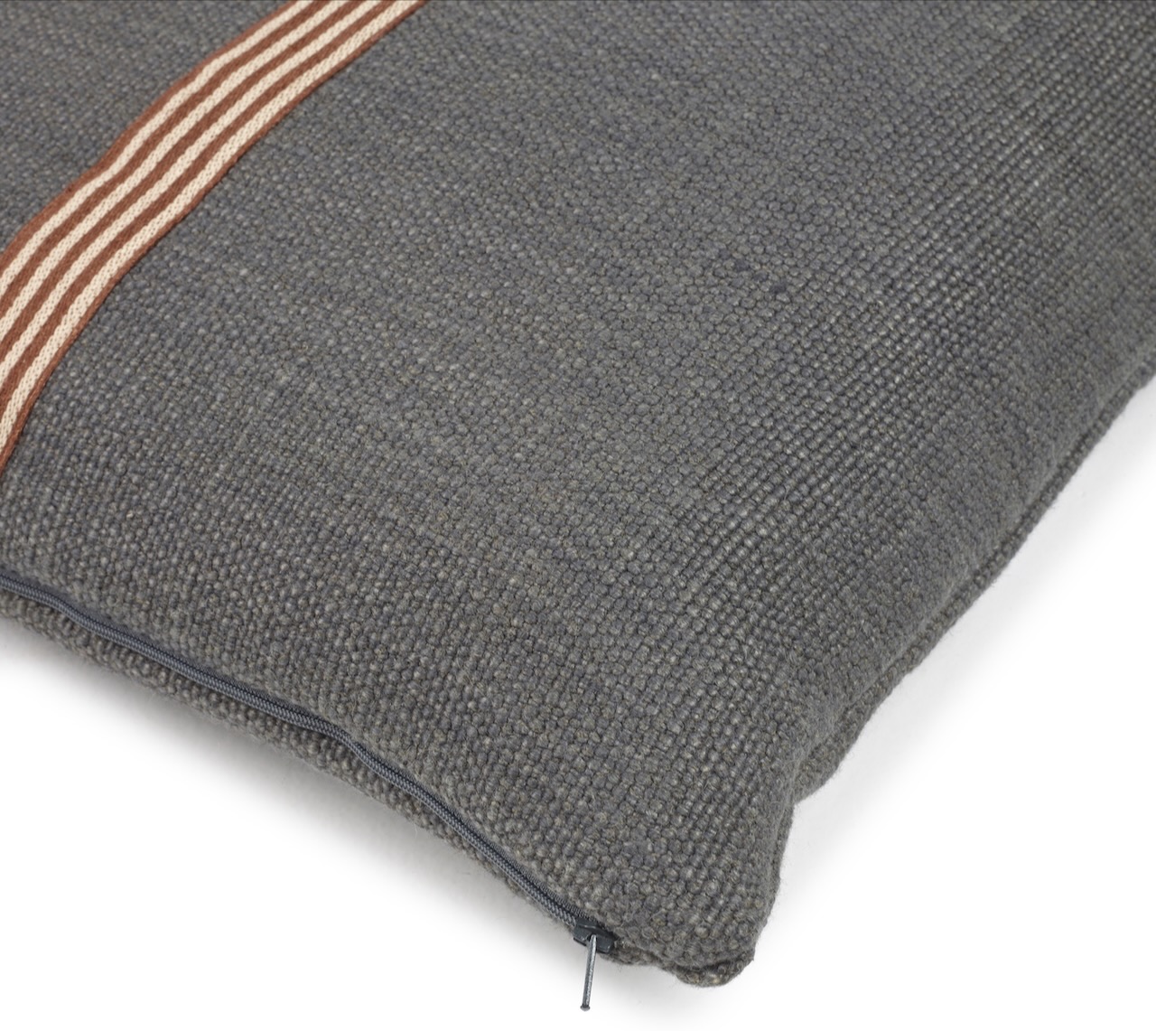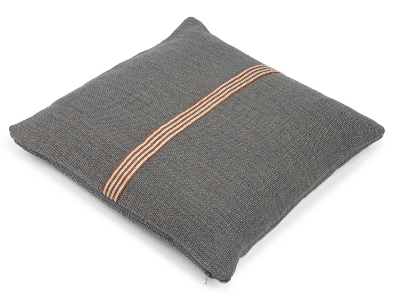 Dieses schöne Kissen von Libeco hat eine edel lässige Optik. Der hochwertige Kissenbezug hat auf der Vorderseite eine mittig aufgesetzte rotbraune und naturfarbene Leinenbordüre, die auf dem kohlegrauen Grundton besonders edel hervorsticht. Das dekorative Kissen von Libeco wird aus einer weichen Leinen-Wollmischung gewebt und hat einen leicht schimmernden Glanz und ist angenehm weich und anschmiegsam. Der Reißverschluss ist dezent und unauffällig. Ein dekoratives edles Kissen für Bett und Sofa.