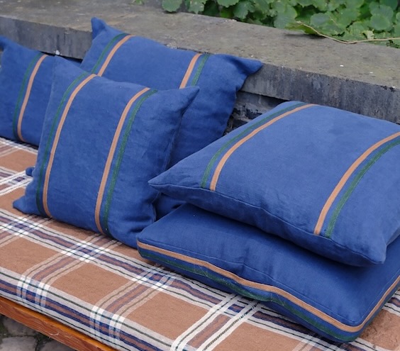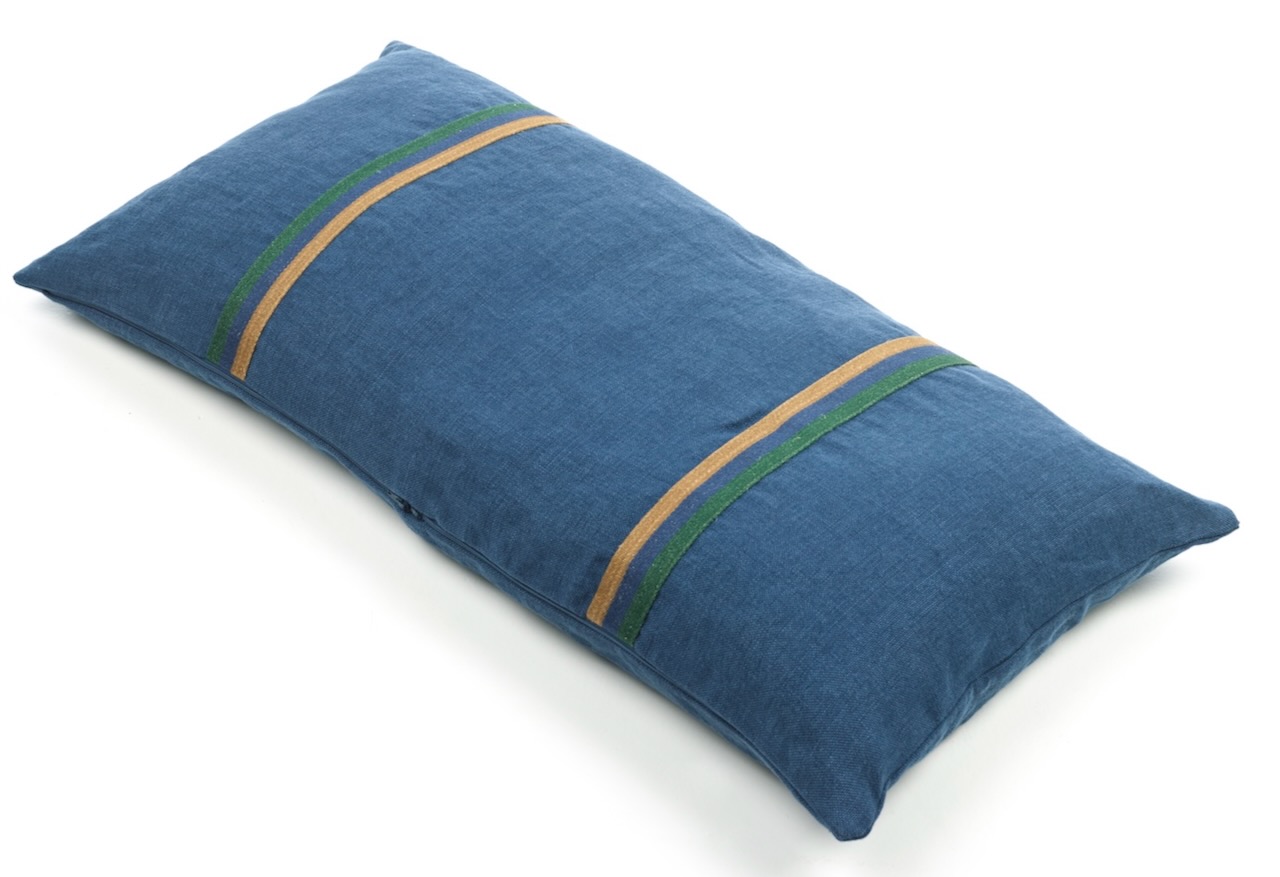 Dieses edel-lässige Kissen von Libeco ist dekorativ und strapazierbar zugleich. Durch das fest gewebte stonewashed Leinen ist dieses exklusive Kissen sehr strapazierfähig und hat gleichzeitig einen edlen"Used Look". Auf der Vorderseite des indigofarbenen Kissenbezugs ist eine gestreifte ingwer-indigo-grüne Leinen-Bördüre aufgenäht und verleiht dem hochwertigen Kissen eine ganz besondere Optik. Ein legeres und dekoratives Kissen für Drinnen und Draußen. Zum edel-lässigen Stil passt der dezente Reißverschluss.