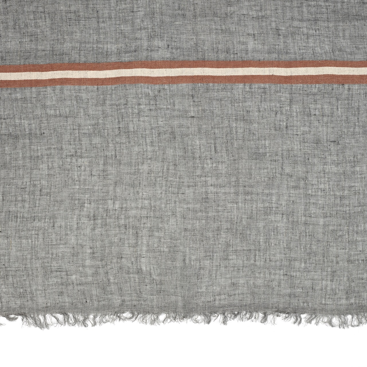 Diese leichte Tagesdecke bzw. Tischdecke von Libeco ist edel und lässig zugleich. Das hochwertige Plaid wird aus feinem Leinen offen gewebt und hat dadurch eine leichte Transparenz. Der graue Grundton wird am Kopfende von einem braun-offwhiten und am Fussende von einem braun-schwarzen Streifen unterbrochen. Das gewaschene Leinen diser hochwertigen Decke hat einen leicht schimmernden Glanz und ist angenehm weich und anschmiegsam. Die dekorativen Fransen an Kopf- und Fussende unterstreichen die edle Lässigkeit der schönen Tagesdecke oder Tischdecke von Libeco.