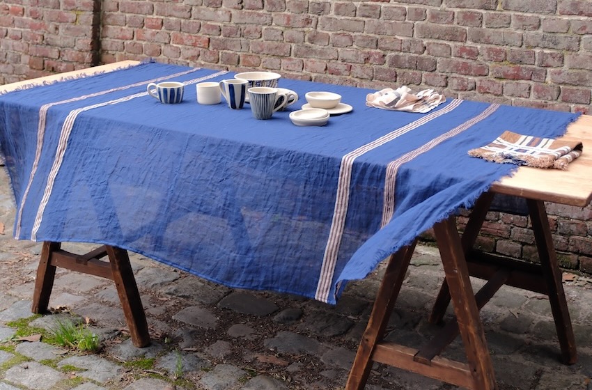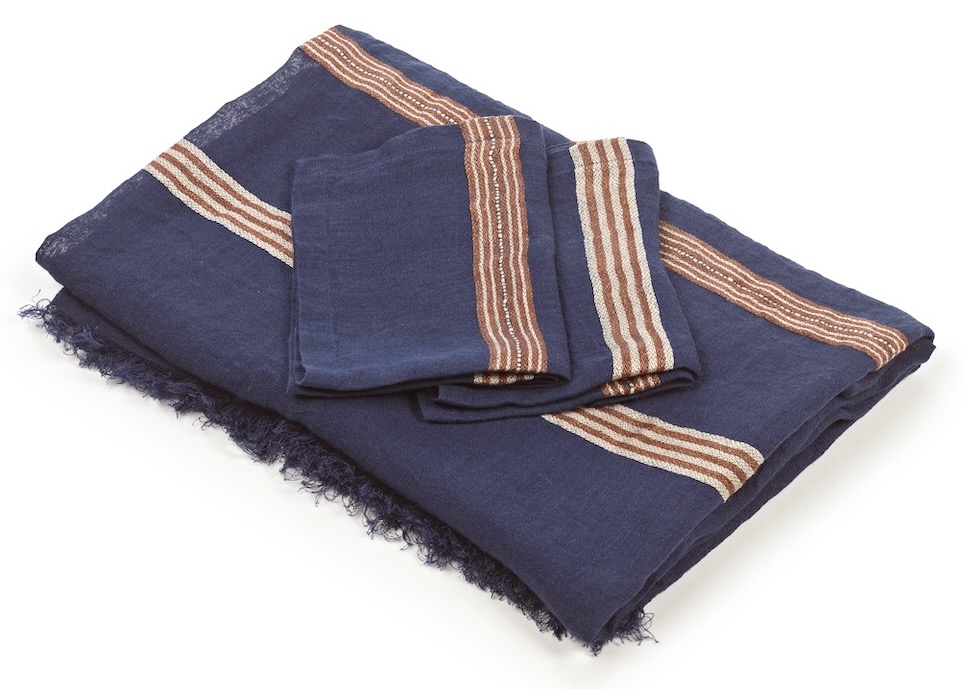 Diese leichte Tagesdecke bzw. Tischdecke von Libeco ist edel und lässig zugleich. Das hochwertige indigofarbene Plaid wird aus feinem Leinen offen gewebt und hat dadurch eine leichte Transparenz. Der edle Indigoton wird am Kopf- und Fussende von jeweils zwei verschieden gewebten braun-ecruefarbenen Streifen durchbrochen. Das gewaschene Leinen dieser hochwertigen Decke hat einen leicht schimmernden Glanz und ist angenehm weich und anschmiegsam. Die dekorativen Fransen an Kopf- und Fussende unterstreichen die edle Lässigkeit der schönen Tagesdecke oder Tischdecke von Libeco.
