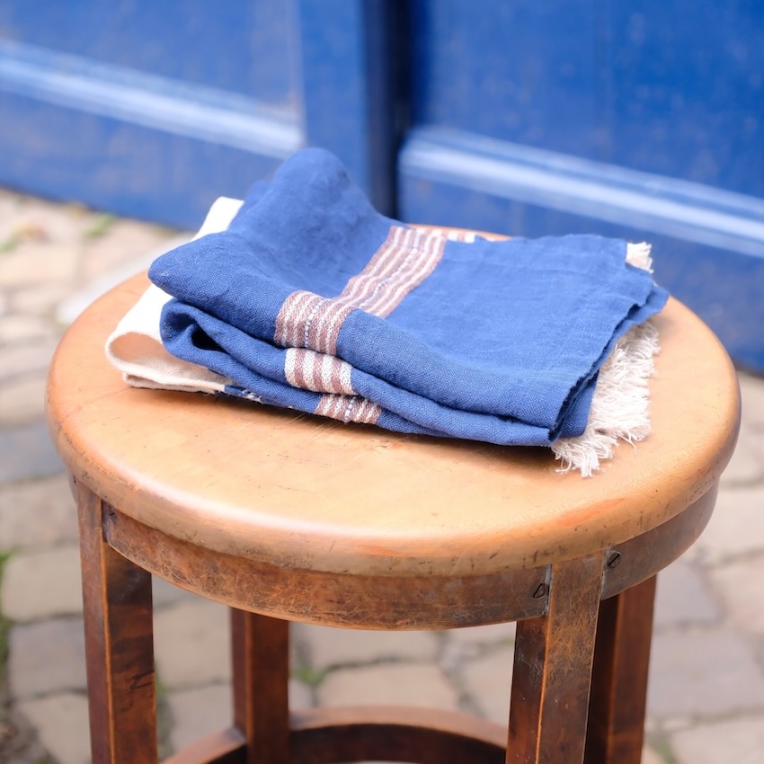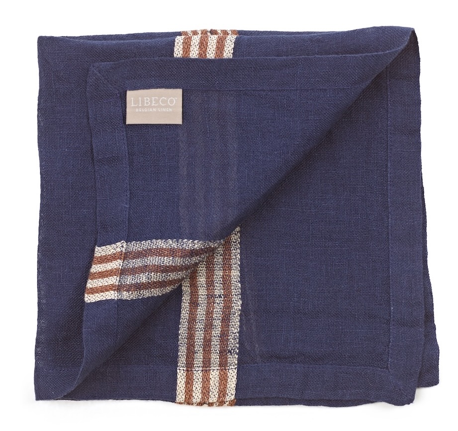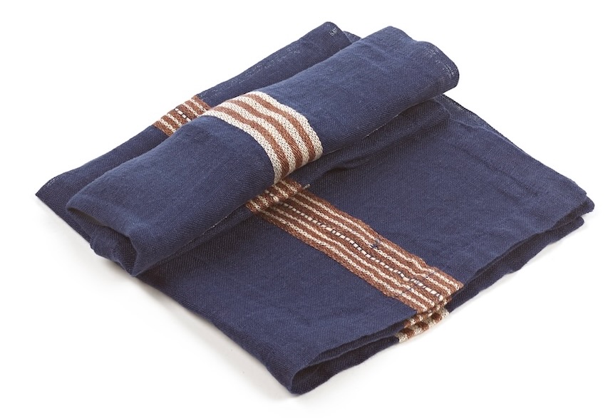 Diese offen gewebte Serviette von Libeco setzt mit ihren dekorativen braunen- und ecruefarbenen Streifen auf indigofarbenem Grund wunderschöne Akzente. Die dekorative Serviette wird aus hochwertigem gewaschenen Leinen gewebt und wirkt durch ihre offene Verarbeitung wie handgewebt. Eingefasst wird sie mit einem Briefeckensaum. Die Mindestbestellmenge beträgt 6 Stück.