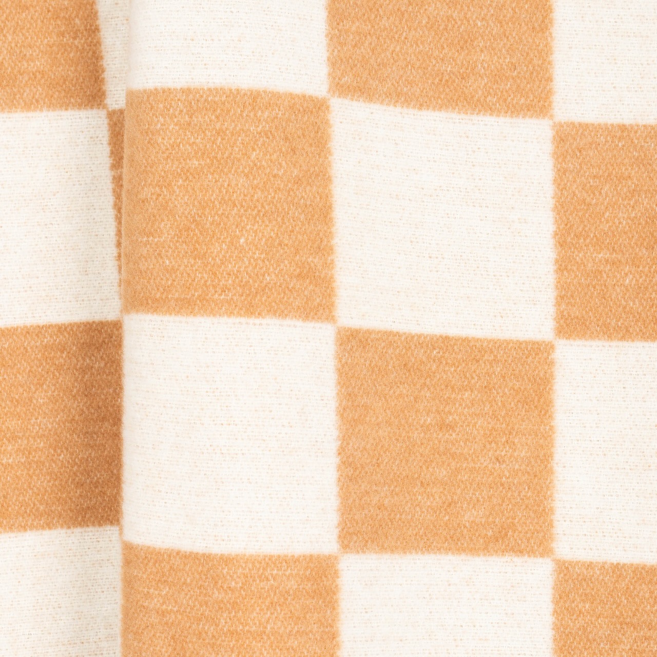 Produktinformationen "Wolldecke Karo caramel/offwhite mit wollweißen Fransen"