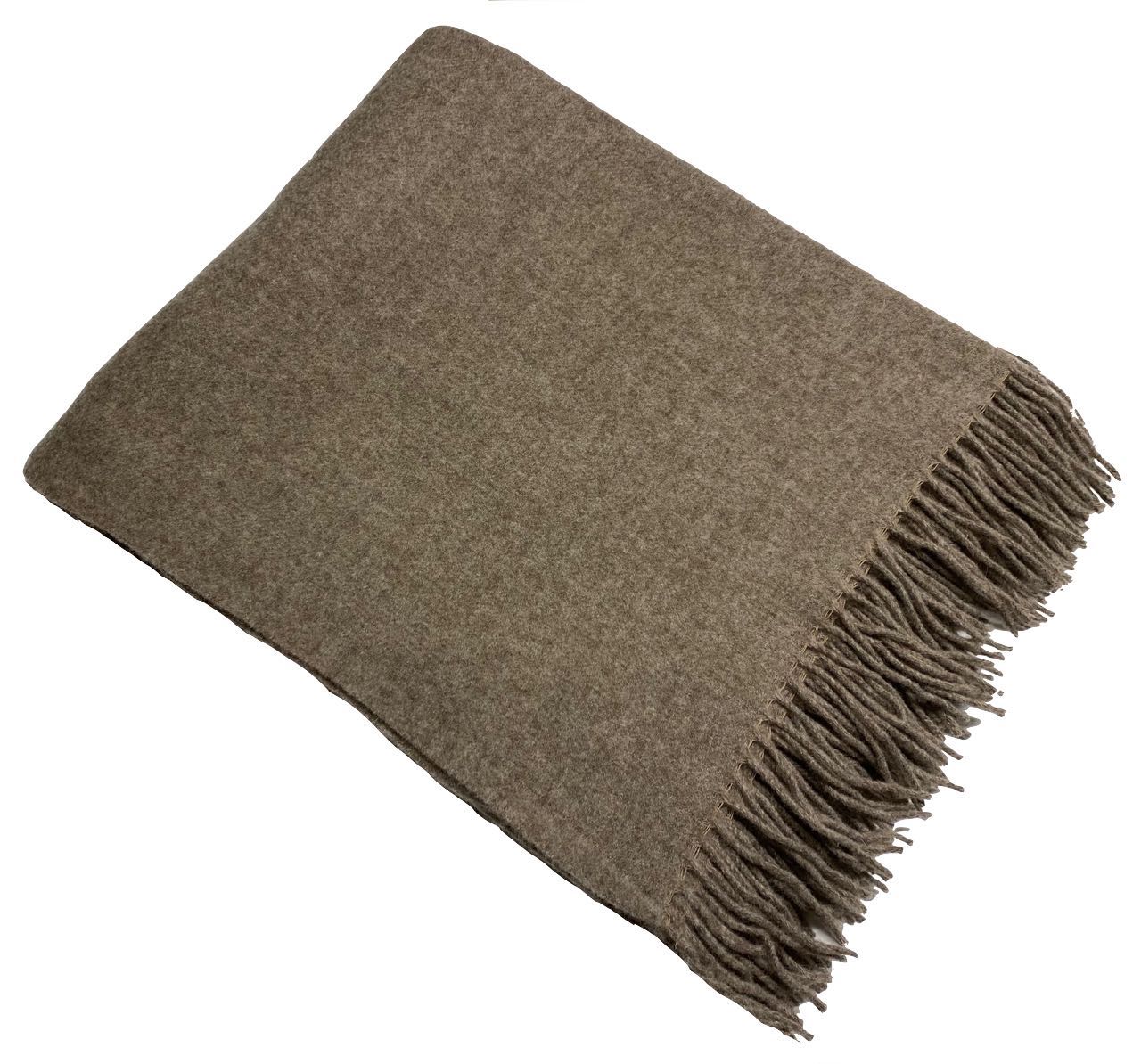 Produktinformationen "Wolldecke Merino Classic braun mit braunen Fransen"