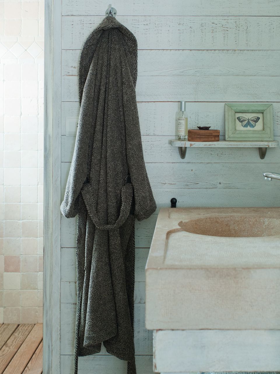 Der edle Bademantel von Leitner Leinen im Dessin Uni lässt sich perfekt mit allen gemusterten Dessins kombinieren, aber auch allein ist der hochwertige Bademantel in seiner edlen Schlichtheit ein Highlight im Bad. Die Wertigkeit des schönen Frottier Bademantels wird durch die harmonische Kombination des natürlichen Leinentons mit warmen, edlen, aufeinander abgestimmten Farbtönen unterstrichen.