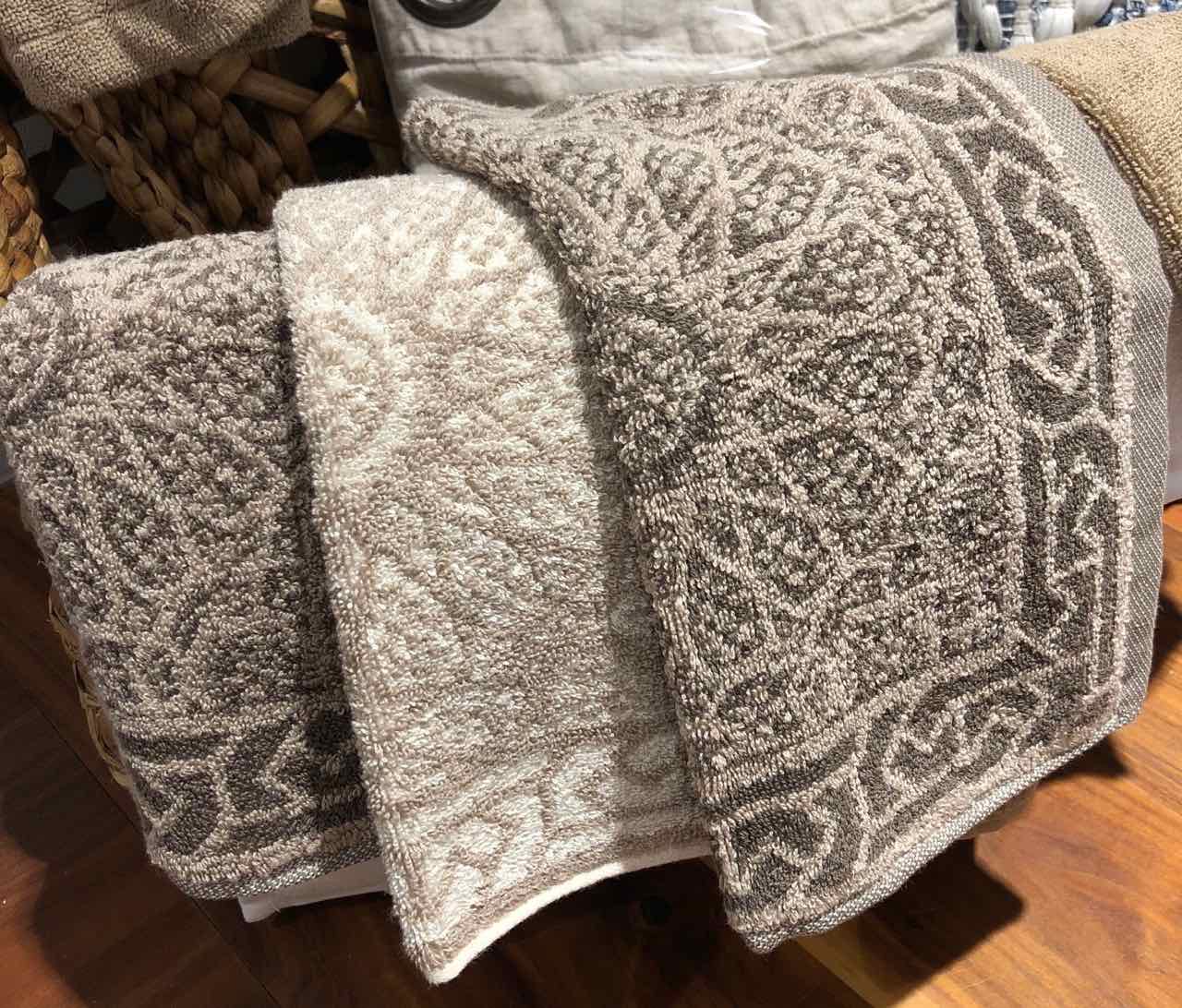 Das hochwertige Seifentuch von Leitner Leinen Im Dessin Arabesque erinnert an ein orientalisches Rankenwerk, das durch ein feines Mäandermuster eingerahmt wird. Die harmonische Kombination des natürlichen Leinentons mit warmen, edlen, aufeinander abgestimmten Farbtönen unterstreicht die Wertigkeit des schönen Seifentuchs aus feinem Frottier. Aufgrund der hochwertigen Baumwoll-Leinen Qualität von Leitner Leinen ist das edle Seifentuch sehr saugfähig, äußerst strapazierbar und langlebig.