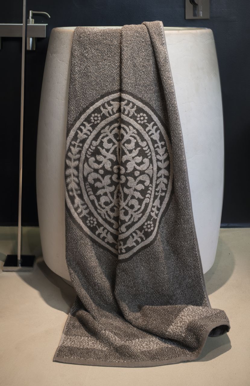 Das edle Liegetuch von Leitner Leinen im ausdrucksstarken Dessin Rosetta besticht durch seine mittig eingewebte Rosette und den feinen Zierstreifen an den kurzen Seiten. Die harmonische Kombination des natürlichen Leinentons mit warmen, edlen, aufeinander abgestimmten Farbtönen unterstreicht die Wertigkeit des exklusiven Liegetuchs aus feinem Frottee. Aufgrund der hochwertigen Baumwoll-Leinen Qualität von Leitner Leinen ist das hochwertige Liegetuch sehr saugfähig, äußerst strapazierbar und langlebig.