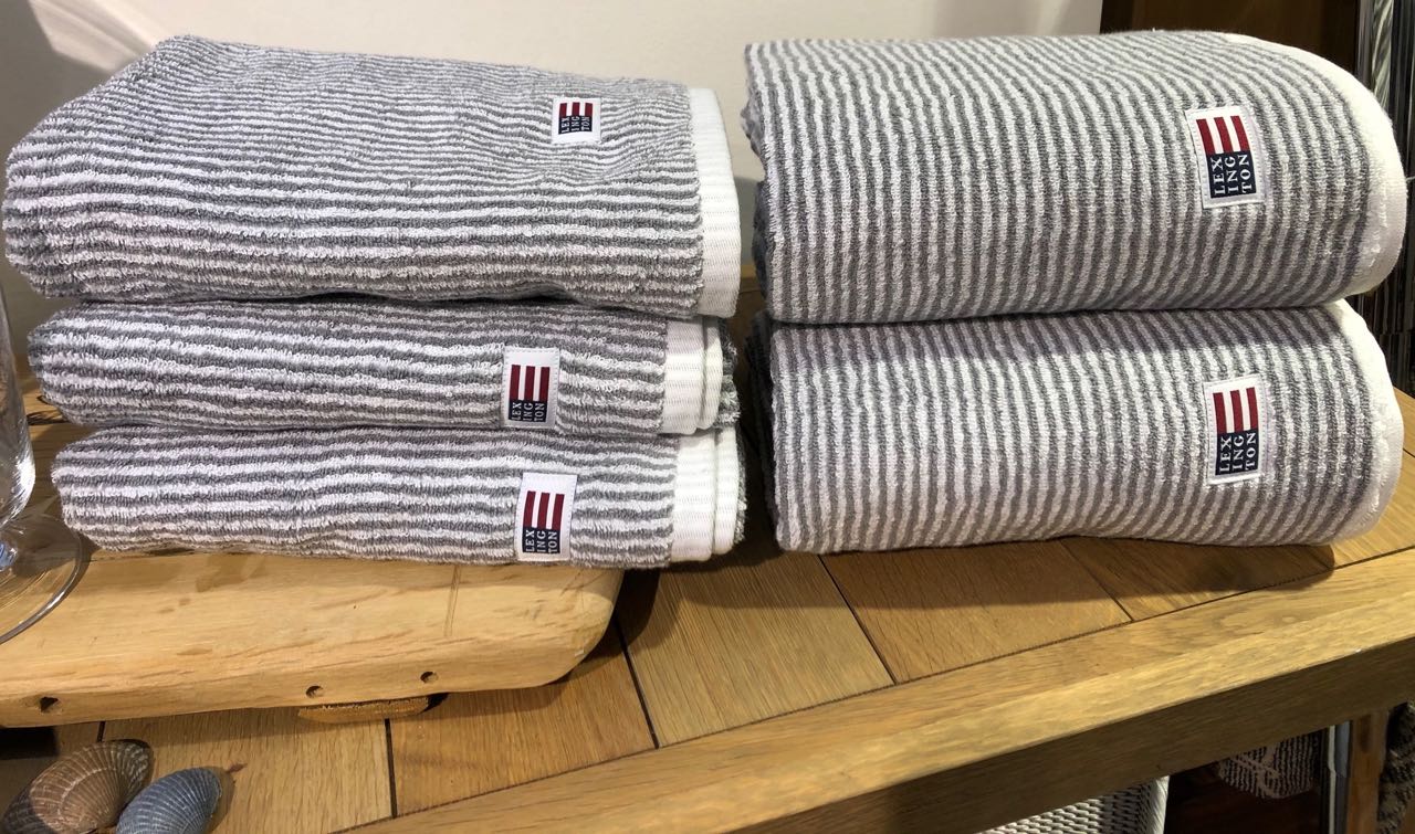 Die hochwertigen Handtücher von Lexington aus weichem Frottee werden aus feiner gekämmter Baumwolle hergestellt. Durch die besondere Qualität sind sind die edlen Handtücher sehr anschmiegsam und saugfähig. An den schmalen Seiten sind die schönen Handtücher von Lexington mit einem weissen Band eingefasst, was den edlen Handtüchern eine sportliche Note verleiht. Mit den klaren grau-weissen Streifen setzen sie schöne frische Akzente im Bad.