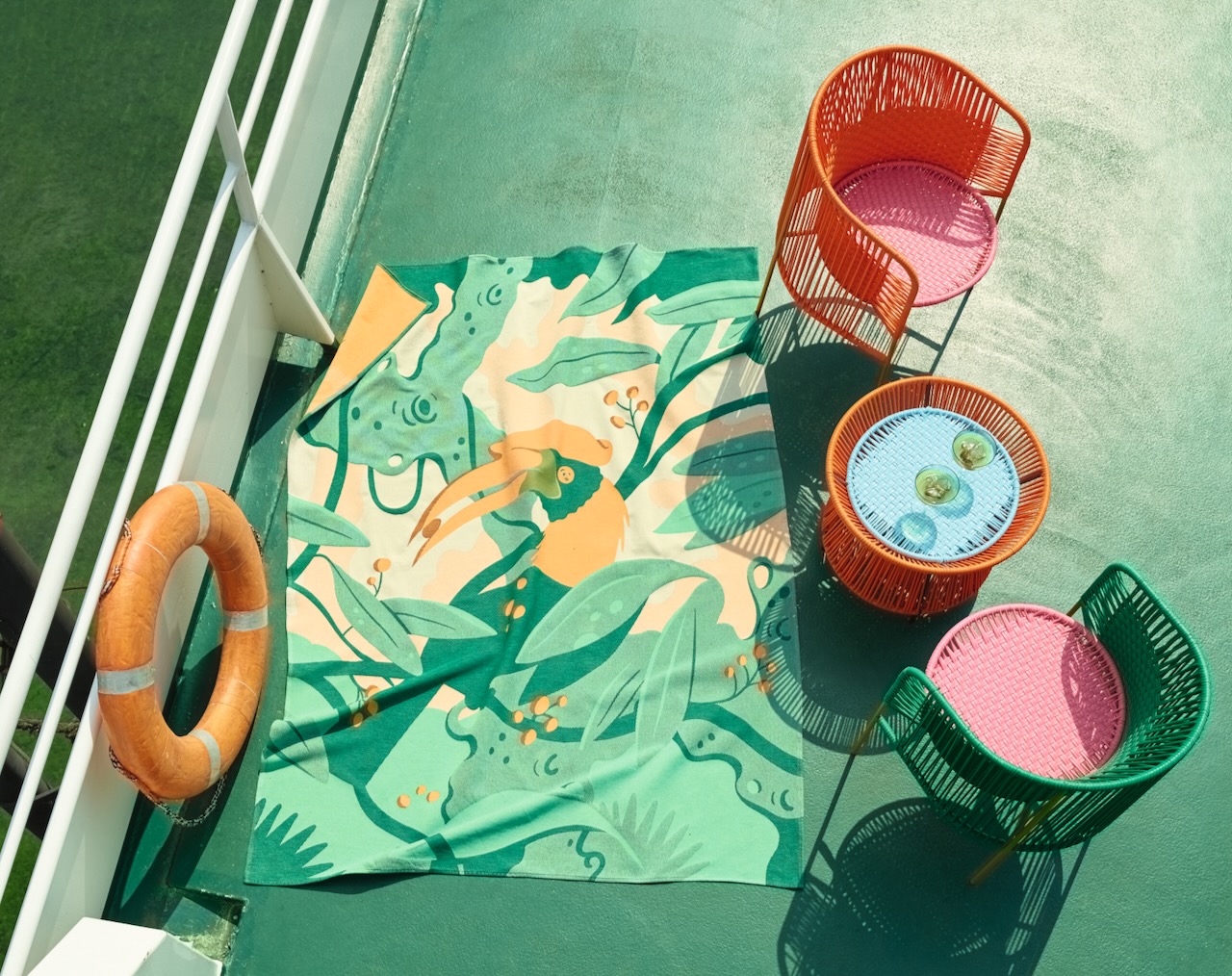 Dieses edle Strandtuch Toucan von Leitner Leinen ist ein paradiesischer Wegbegleiter durch den Sommer. Das Motiv des exklusiven Strandlakens stammt aus der Feder der Illustratorin Petra Eriksson und spielt kontrastreich mit Nuancen von satten Grün und kräftigen Gelbtönen. Aufgrund der hochwertigen Bio-Baumwoll Qualität von Leitner Leinen ist das edle Strandlaken perfekt um schöne Sonnenstunden zu geniessen. Das Strandtuch hat eine Größe von 140x190 cm.
