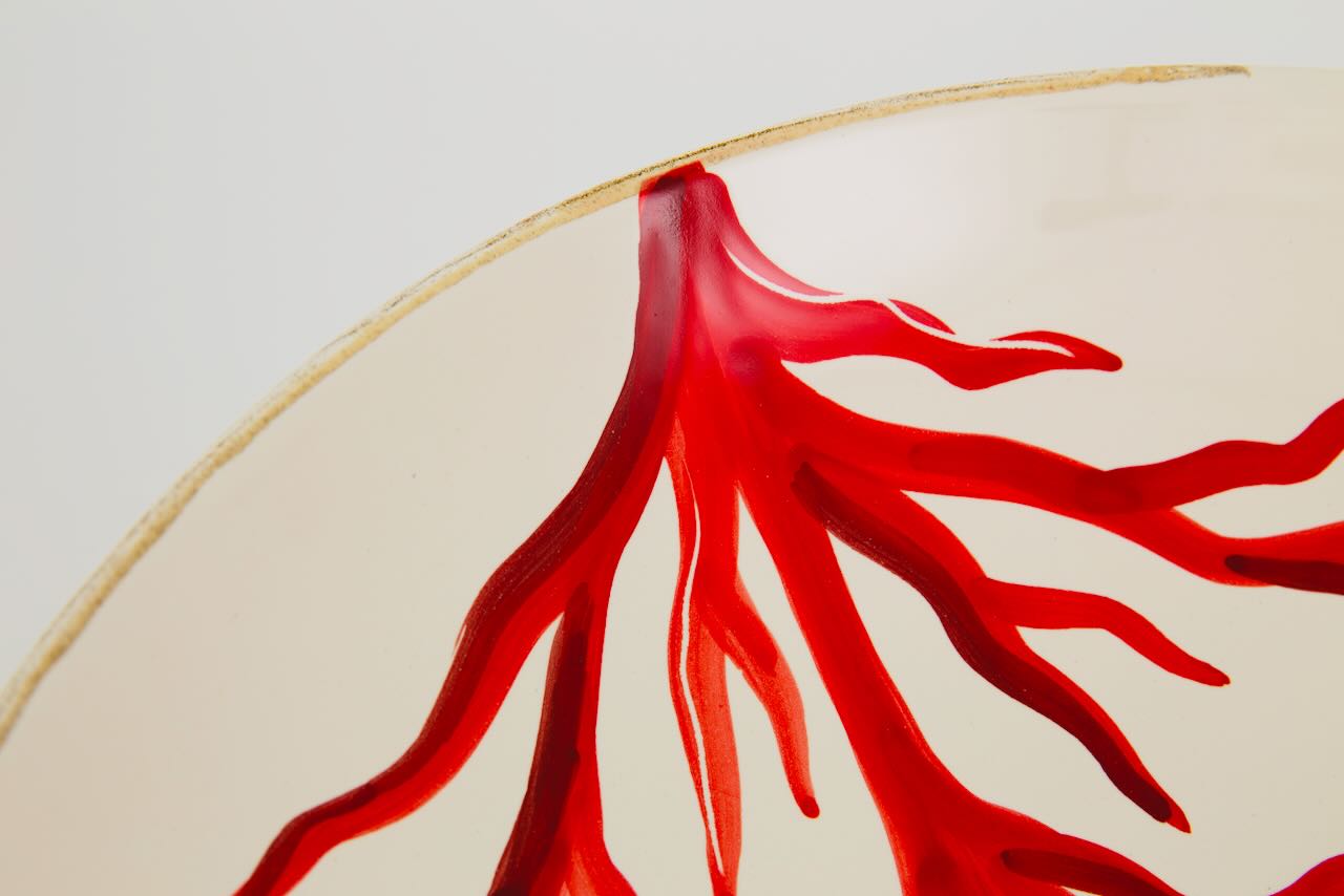 Diese große Schale von Flamant aus der Serie Mare ist ein Highlight für jede Tafel. Das ausdrucksstarke Korallenmotiv in warmen Rottönen ist von Hand auf die hochwertige Schale gemalt und lässt das Essen zu einem Erlebnis werden. Der dekorative Korallen-Teller und die Korallen-Bowl sind die perfekte Ergänzung zur schönen Korallen-Schale des hochwertigen Geschirrs von Flamant.