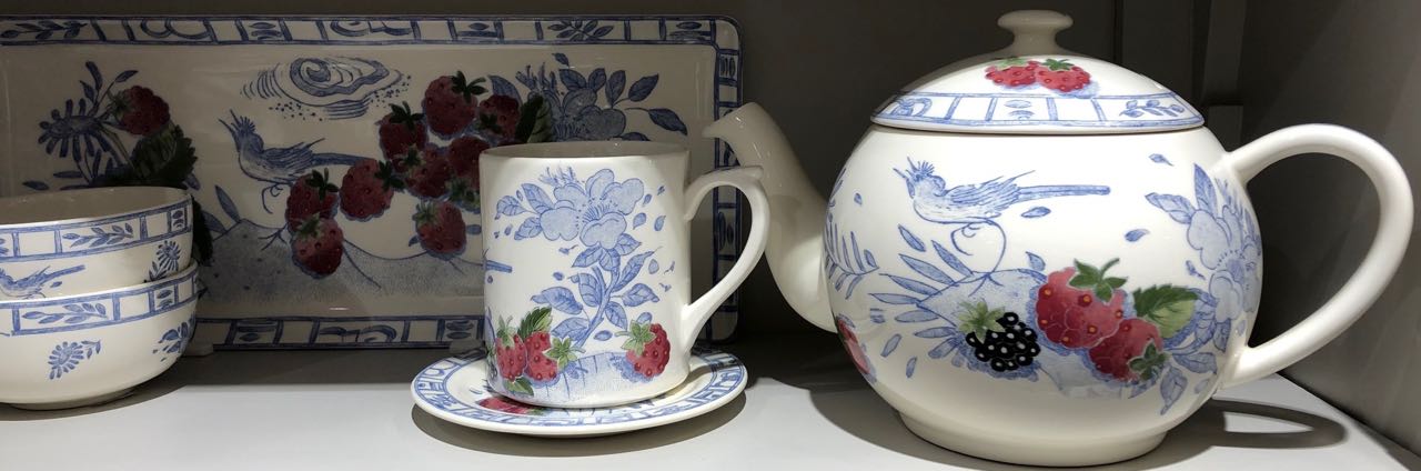 Mit dem farbigen Dekor aus Himbeeren ergänzt die edle Königskuchenplatte aus der hochwertigen Geschirr-Serie Oiseau Bleu Fruits von Gien das klassische blau-weiße Geschirr Oiseau Bleu Mono mit dem feinen Vogelmotiv. Aus hochwertiger Keramik gebrannt ist die feine Kuchenplatte für den täglichen Gebrauch und auch für den besonderen Anlass geeignet. Auf der schönen Kuchenplatte lassen sich feine Torten und Kuchen oder schmackhafte Desserts besonders dekorativ anrichten.