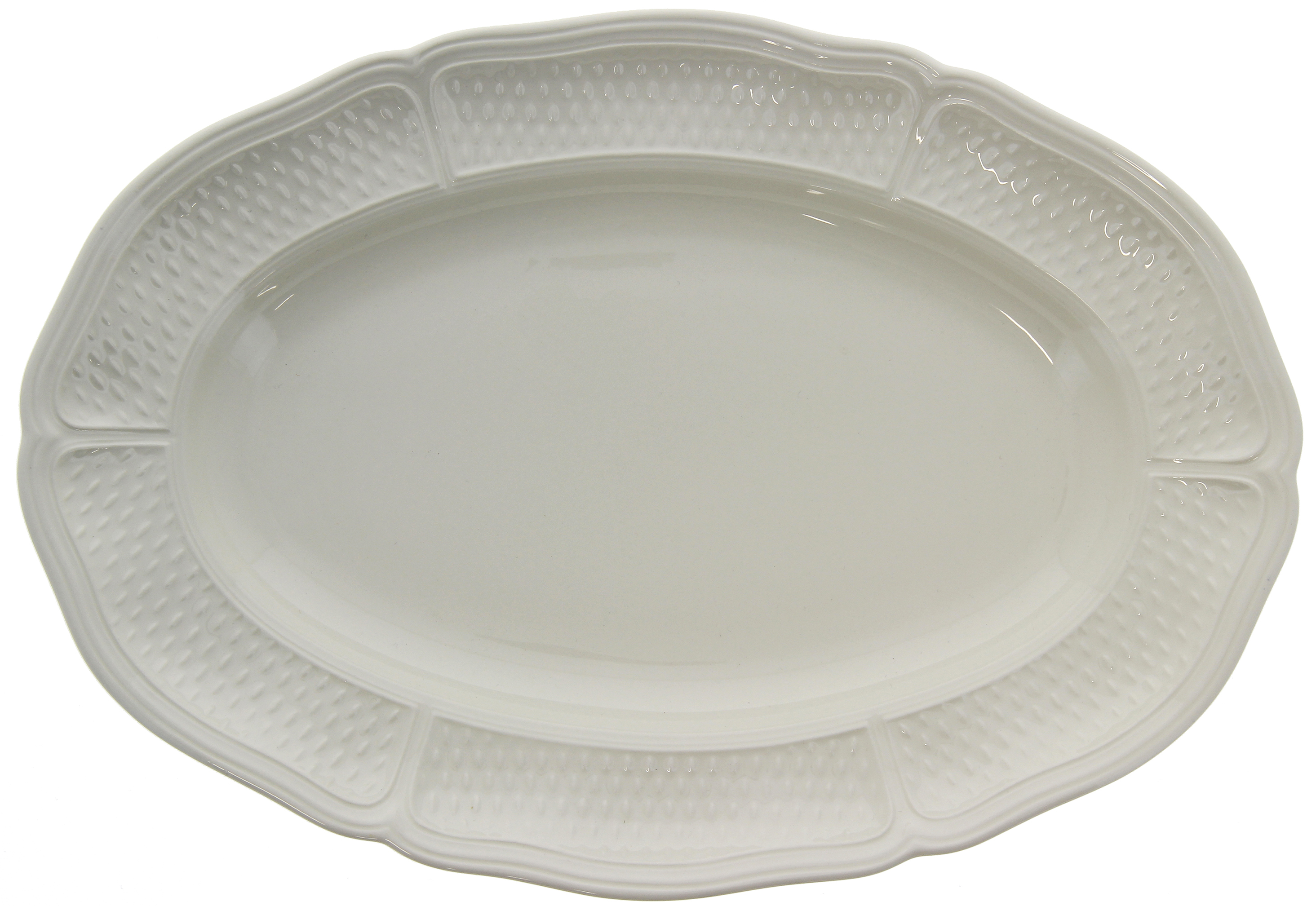 Die ovale dekorative Beilagenplatte aus der hochwertigen Geschirr-Serie Pont aux Choux Blanc von Gien besticht durch die fein gearbeitete Keramik in schönem Weiß. Mit dem leicht erhabenen Muster ziert diese hochwertige Platte jede Tafel und ist ein besonderes und feines Highlight für den schön gedeckten Tisch. Auf der feinen Platte lassen sich verschiedene Gemüse und Fleisch wie auch Salate wunderbar anrichten.