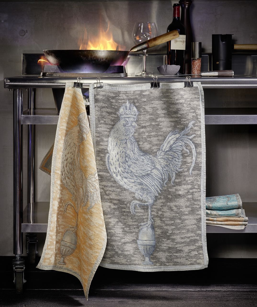 Das hochwertige Geschirrtuch El Gallo aus reinem Leinen von Leitner Leinen zeigt einen königlichen Hahn thronend auf einem Ei wachend über sein Reich. Aus saugstarkem und strapazierfähigem Leinen gefertigt, ist dieses fein gewebte Geschirrtuch von Leitner Leinen sehr funktionell und ein wahrer Blickfang in der Küche. Das exklusive Geschirrtuch eignet sich besonders gut für alle Glaswaren und ist daher ein perfektes Gläsertuch. Das Reinleinen von Leitner hat einen festen Griff und einen einen besonders schönen und intensiven Glanz, insofern ist das filigran gewebte Dessin El Gallo ohne Frage etwas ganz Besonderes.