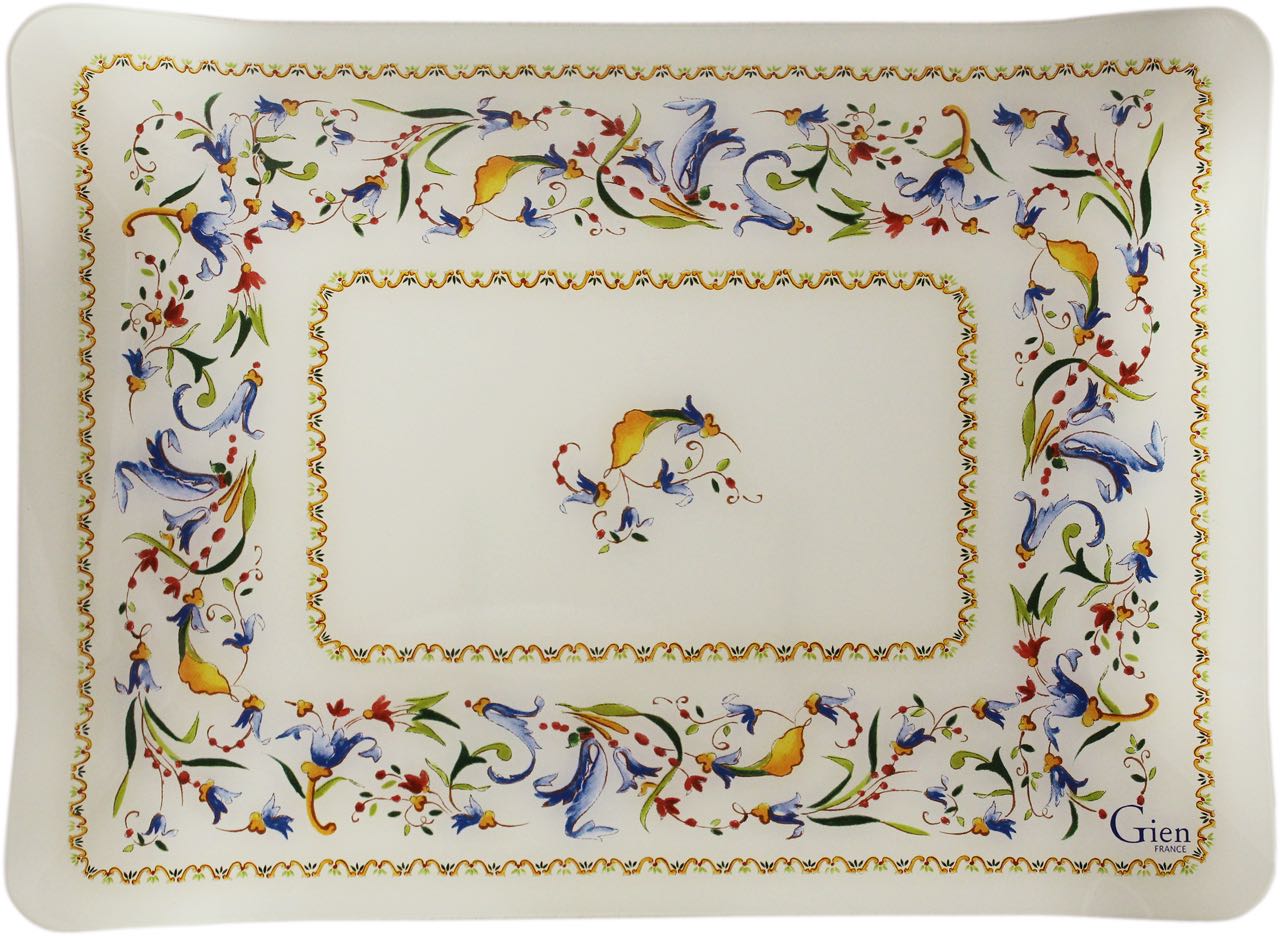 Das dekorative Tablett von Gien im Dessin Toscana besticht durch seine fein gemalten Blätter- und Blüten Motive, die das hochwertige Tablett wie ein schönes Ornament einrahmen. Das hochwertige Acryl ist stabil und leicht zugleich. In Verbindung mit dem hoch gezogenen Rand ist es gut und sicher zu tragen und es bietet gleichzeitig Schutz für das Geschirr.