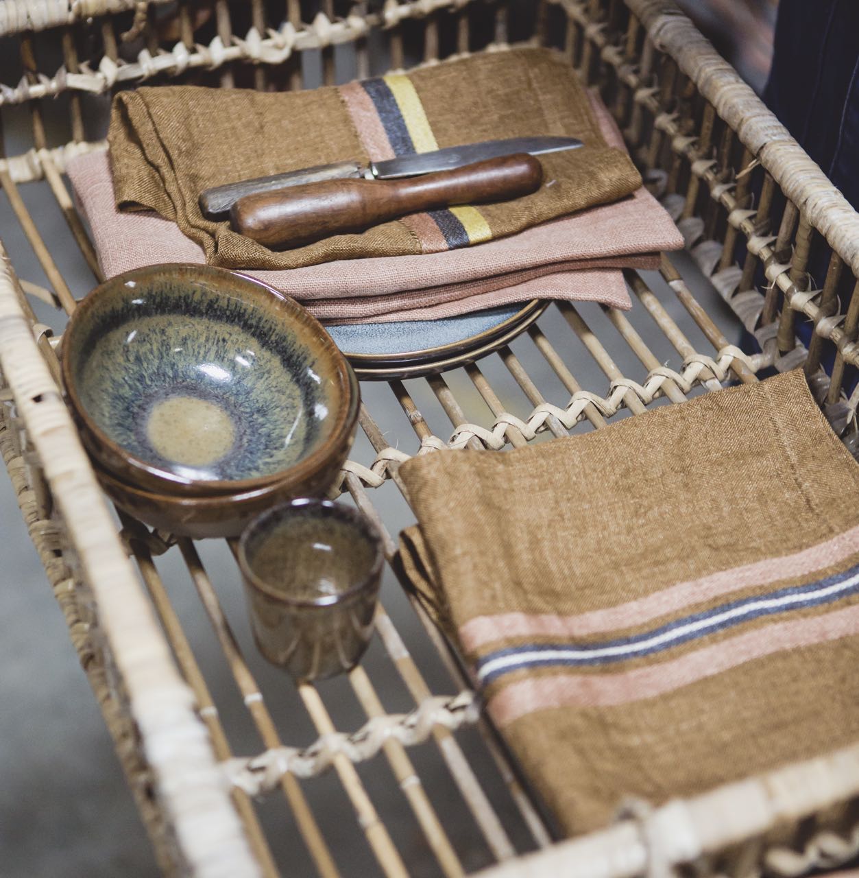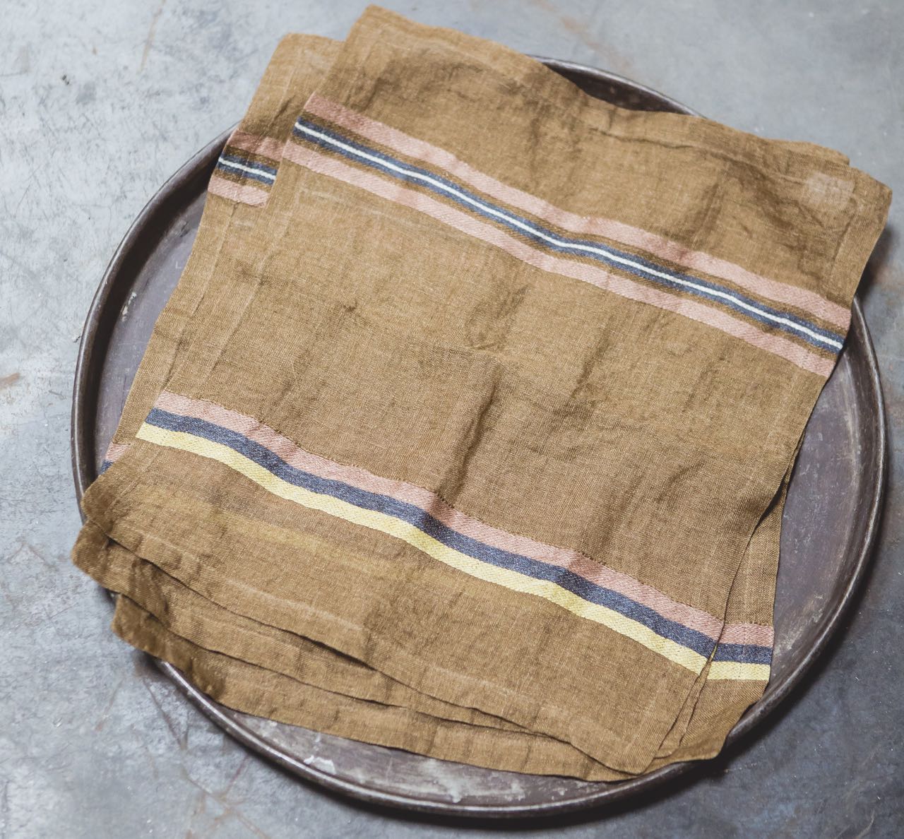 Diese filigran gewebte Serviette von Libeco setzt mit ihren edlen, farbigen Streifen auf braunem Grund ganz besondere Akzente. Die edle Serviette wird aus hochwertigem gewaschenen Leinen gewebt und wirkt durch ihre feine Verarbeitung wie handgewebt. Eingefasst wird sie mit einem Briefeckensaum. Die Mindestbestellmenge beträgt 2 Stück.