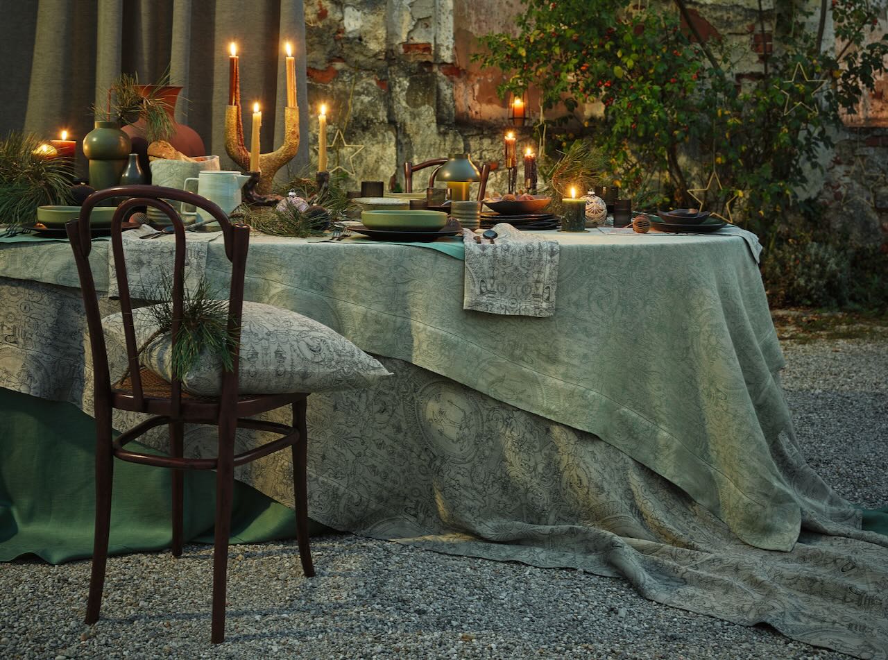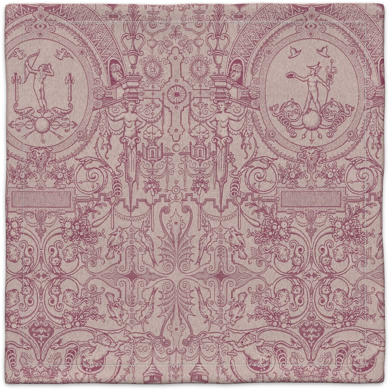 Diese wunderschöne Serviette von Leitner Leinen im Dessin Cartouche aus Reinleinen ist in einem der aufwendigsten Jacquardmuster aus dem Hause Leitner Leinen gewebt Das fein gewebte Muster mit seinen dezent abgestimmten Farben ist geprägt von Ranken, Arabesquen, Füllhörnern, Medaillons, Putten, Tiermotiven und verschiedenen fantastischen Gestalten. Der edle Glanz des Reinleinens unterstreicht die besondere Wertigkeit der exklusiven Serviette.