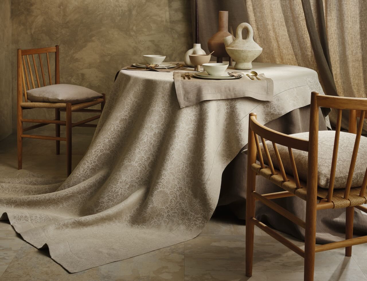 Diese schöne Tischdecke von Leitner Leinen im Dessin Fleur Royale aus Reinleinen lässt Anklänge der Renaissance mit der Formenvielfalt der bäuerlichen Malerei des 18. Jahunderts zu einer feinen Komposition aus stilisierten Nelken, floralen Ranken und kleinen Blüten verschmelzen. Der schöne Glanz des Reinleinen unterstreicht die besondere Wertigkeit des edlen Tischtuchs.
