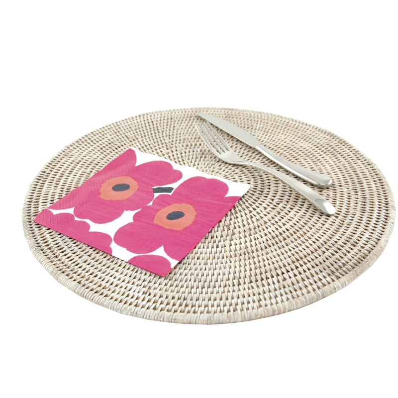 Mit diesem schönen runden Tischset aus hochwertigem Rattan lässt sich der Tisch besonders dekorativ eindecken, das hochwertige Tischset passt zu jedem Geschirr und verleiht Tisch und Tafel eine besondere Note. In aufwendiger Handarbeit wertig verarbeitet ist es zeitlos und schön, gleichzeitig funktional und strapazierbar. Durch seine wasserabweisende Lasur lässt sich das dekorative Tischset gut reinigen und ist praktisch überall einsetzbar. Es eignet sich für den Wohnraum genauso wie für Küche oder Garten und verleiht dem Zuhause eine warme persönliche Note. In schönem Weiß setzt es die richtigen Akzente.