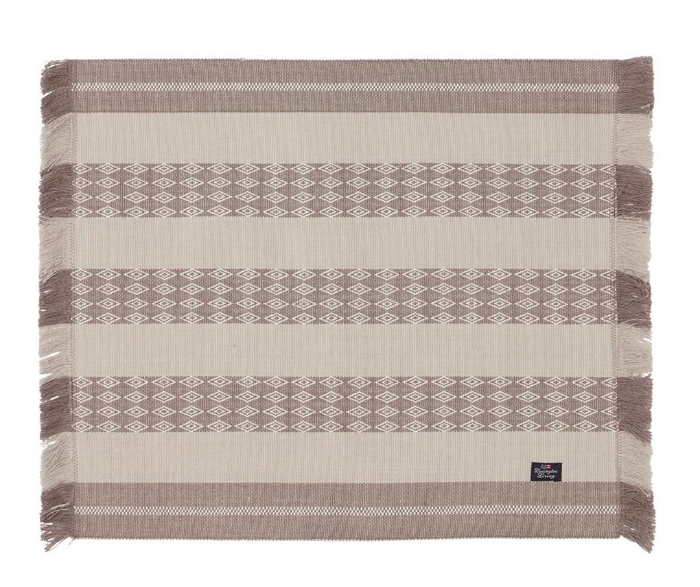 Dieses schöne Tischset von Lexington wird in einem tollen Jaquardmuster aus beige-weißen Streifen gewebt. Die grobe Struktur der hochwertigen Baumwolle und die dekorativen Fransen verleihen dem schönen Tischset eine ganz besondere Note. Die Mindestbestellmenge beträgt 2 Stück.