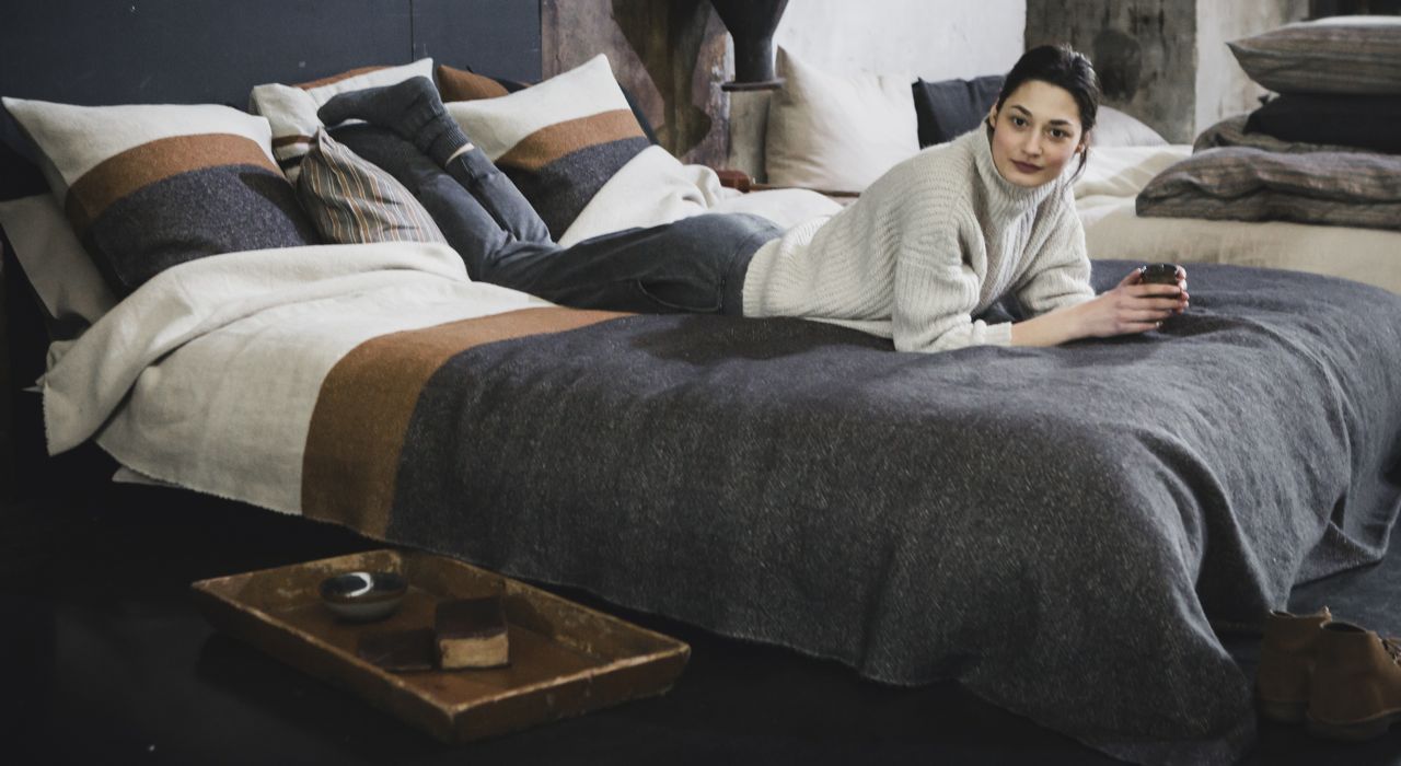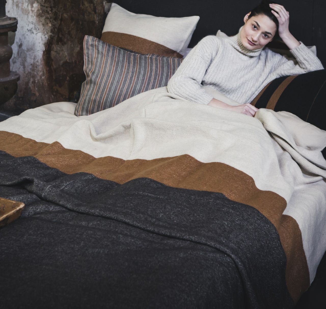 Dieses hochwertige Plaid von Libeco hat eine ausgesprochen prägnante edle Optik. Der warme Naturton der einen Seite ist durch einen breiten braunen Streifen vom Grau der anderen Hälfte abgesetzt und wirkt in diesem Farbkontrast sehr harmonisch. Aus gewaschener Leinen-Wollmischung hergestellt hat das schöne Plaid eine grobe Gewebestruktur, die sich weich und angenehm anfühlt. Eine längs verlaufende Mittelnaht sorgt für eine gewisse Lässigkeit der ausdrucksstarken und dekorativen Decke für alle Wohnbereiche.