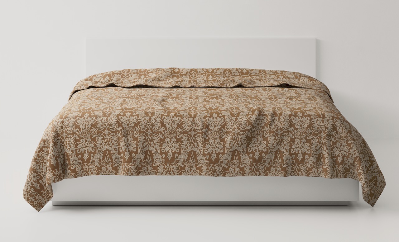 Der edle Bettüberwurf von Leitner Leinen wird in diesem edlen Dessin Mariage Nr. 30 in der gewählten Farbe und Größe nach Maß gefertigt. Zusätzlich zu den gezeigten Maßen sind auf Anfrage fast alle beliebigen Maße möglich.