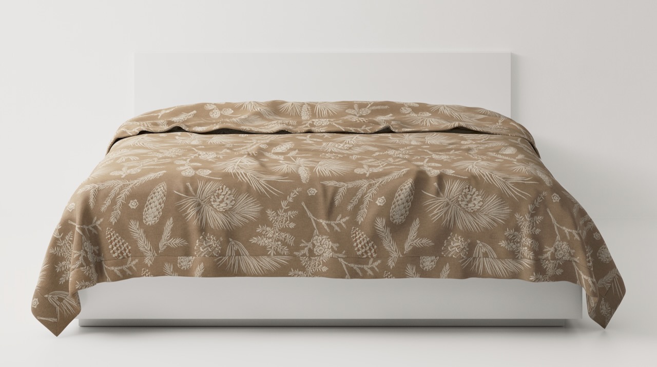 Der edle Bettüberwurf von Leitner Leinen wird in diesem schönen Dessin Foresta in der gewählten Farbe und Größe nach Maß gefertigt. Zusätzlich zu den gezeigten Maßen sind auf Anfrage fast alle beliebigen Maße möglich. Bei den Farben Copal und Kristall wird ein glänzender Lurex-Faden mit eingewebt.
