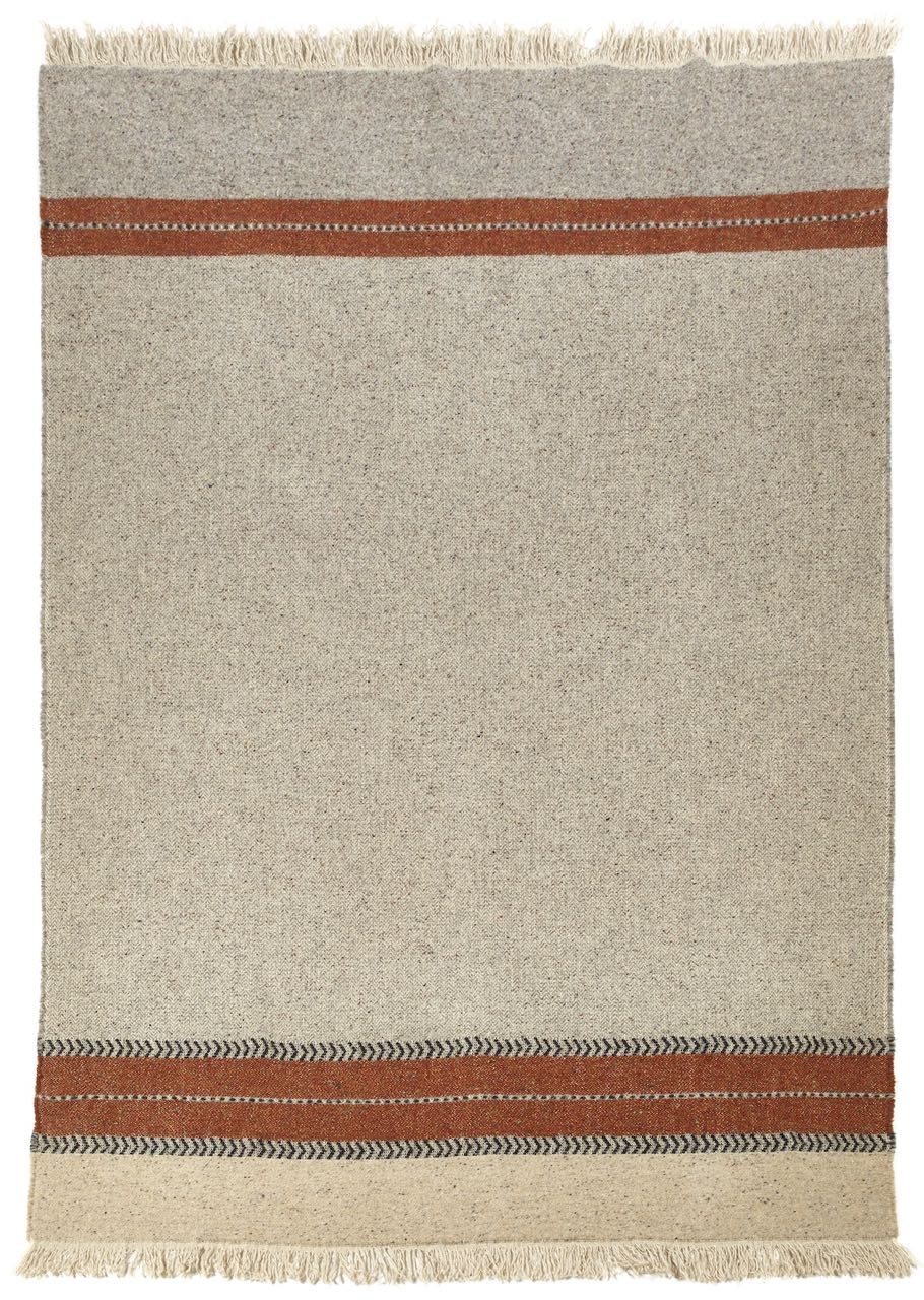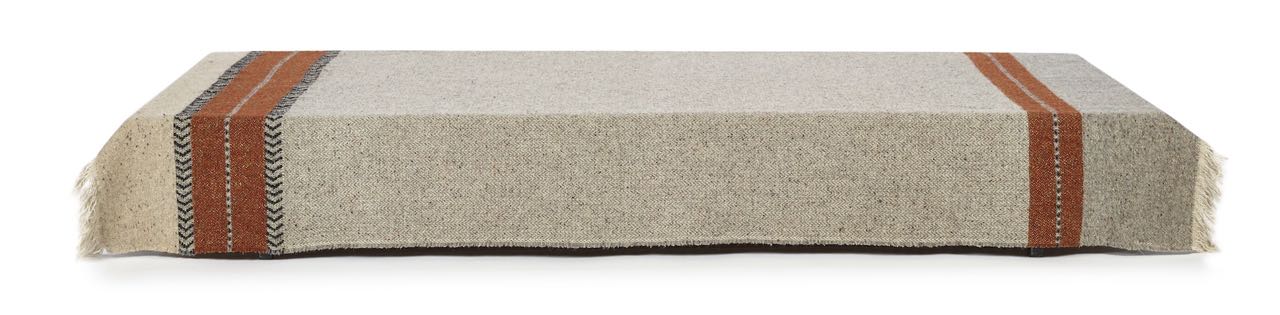 Diese hochwertige Tagesdecke von Libeco besticht durch die edle Farbkombination aus ruhigem Grau-Beige und warmen Rostbraun. Das hochwertige Plaid ist aus einer gewaschenen Leinen-Wollmischung gewebt und hat eine grobe Gewebestruktur mit weicher angenehmer Oberfläche. Das edle Plaid hat eine interessante Mischung aus Fischgrätmuster und Leinwandbindung und zwei dekorative Streifen in Rostbraun und Schwarz. Durch die leinenfarbenen Fransen als seitlichen Abschluss erhält die schöne Decke eine edel lässige Optik.