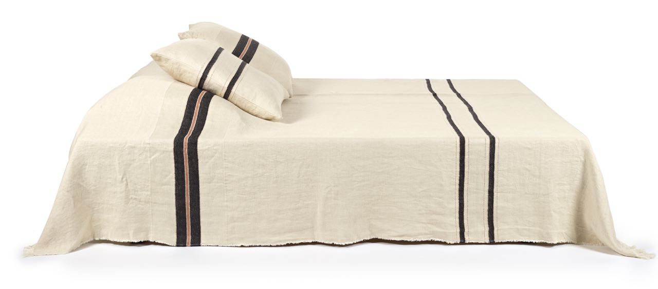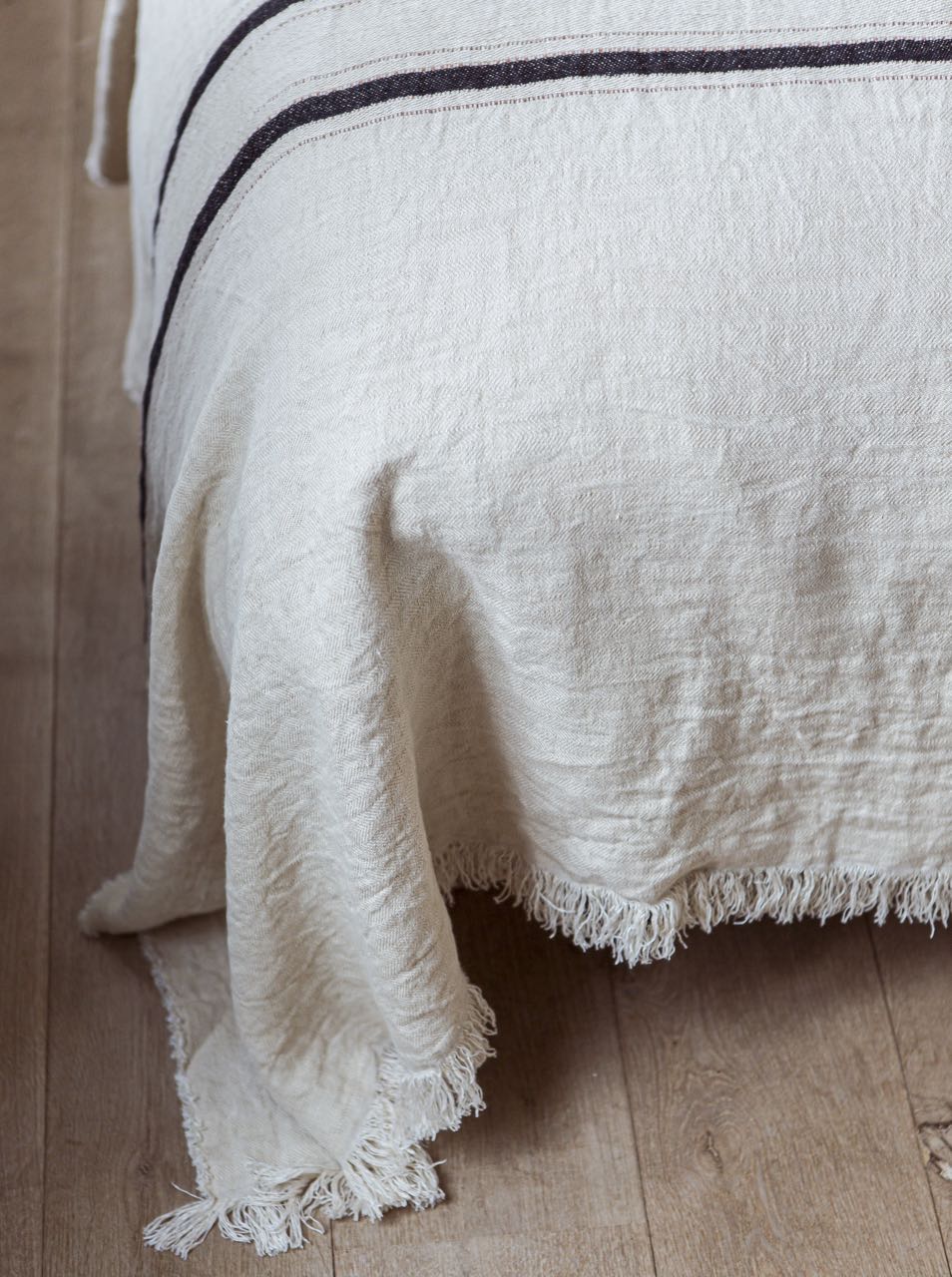 Diese exklusive Tagesdecke von Libeco ist von schlichter lässiger Eleganz. Das edle Plaid hat hat einen naturfarbenen Grundton mit dekorativen schwarzen und braunen Streifen. Das gewaschene Leinen der hochwertigen Decke hat einen leicht schimmernden Glanz und ist angenehm weich und anschmiegsam. Die dekorativen Fransen und eine Mittelnaht unterstreichen die edle Lässigkeit der schönen Tagesdecke von Libeco.