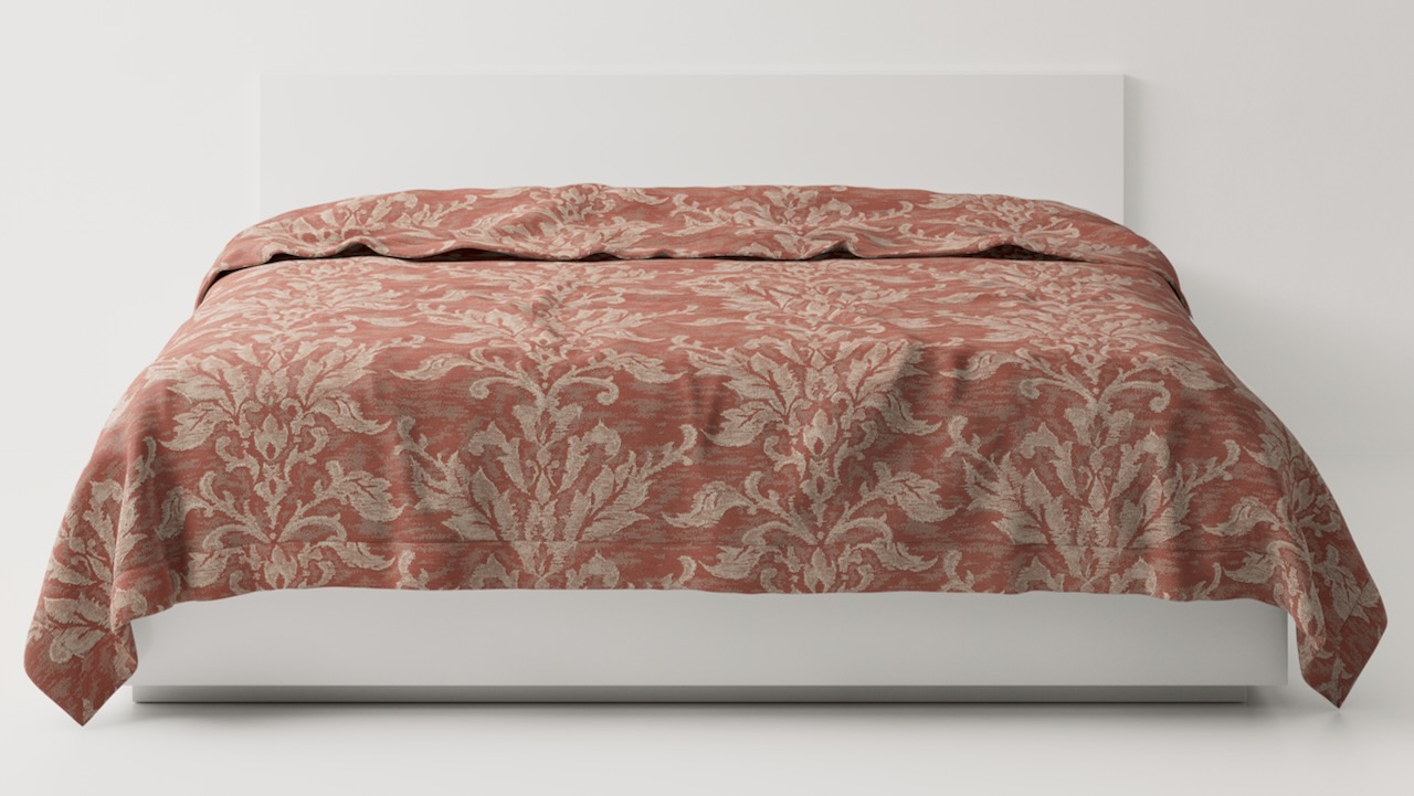 Der edle Bettüberwurf von Leitner Leinen wird in diesem ausgefallenen Dessin Stilblatt in der gewählten Farbe und Größe nach Maß gefertigt. Zusätzlich zu den gezeigten Maßen sind auf Anfrage fast alle beliebigen Maße möglich.