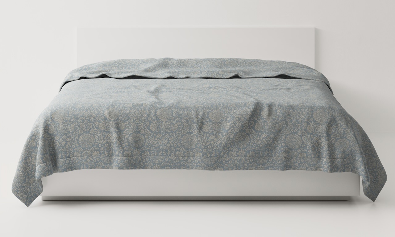 Der edle Bettüberwurf von Leitner Leinen wird in diesem ausdrucksstarken Dessin Fleur Royale in der gewählten Farbe und Größe nach Maß gefertigt. Zusätzlich zu den gezeigten Maßen sind auf Anfrage fast alle beliebigen Maße möglich.