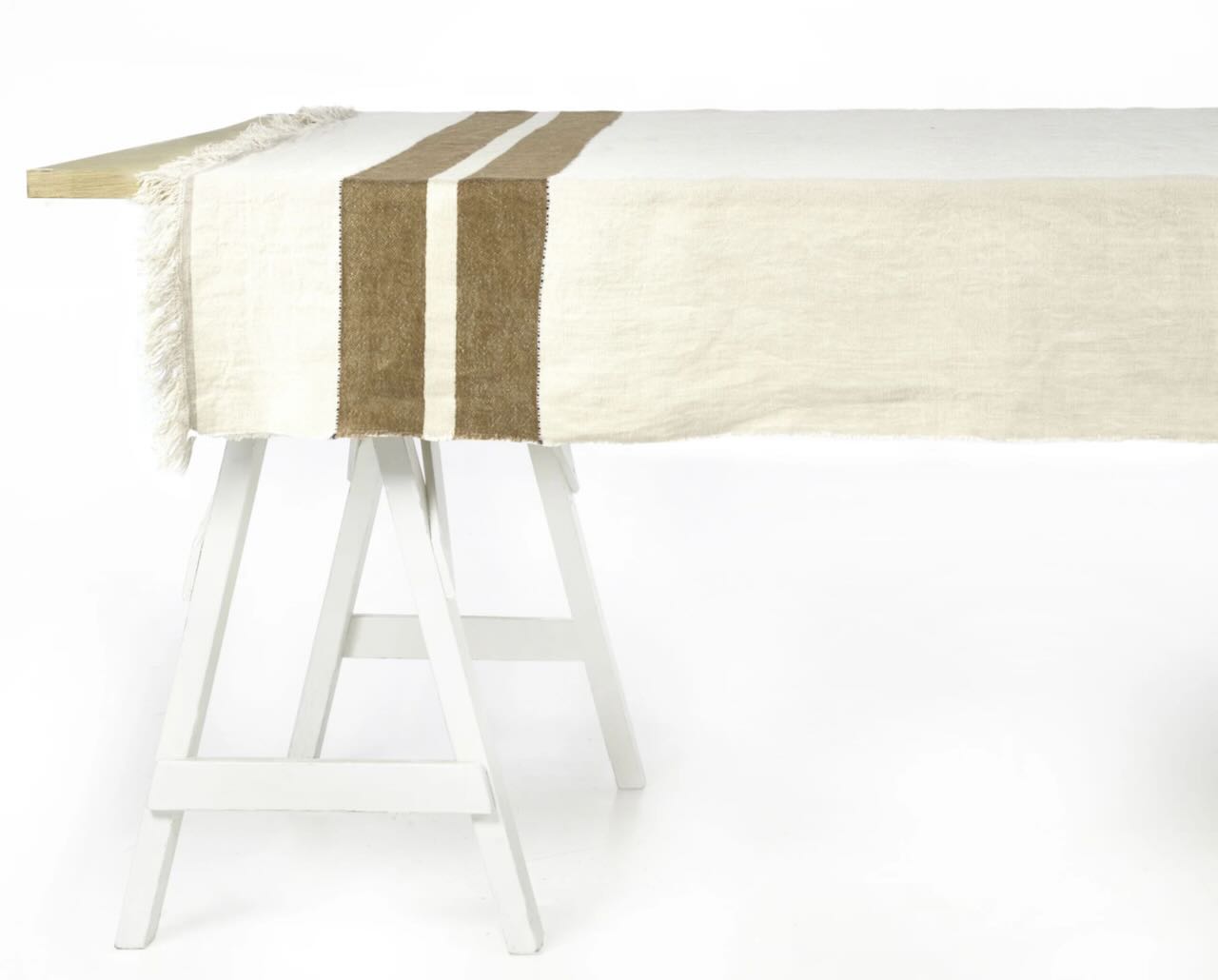 Diese schöne Tagesdecke bzw. Tischdecke von Libeco ist lässig, sportlich und edel. Das hochwertige Plaid hat hat einen elfenbeinfarbenen Grundton mit zwei verschieden breiten Doppelstreifen in Braun. Das gewaschene Leinen der hochwertigen Decke hat einen leicht schimmernden Glanz und ist angenehm weich und anschmiegsam. Die dekorativen Fransen unterstreichen die edle Lässigkeit der schönen Tagesdecke oder Tischdecke von Libeco.