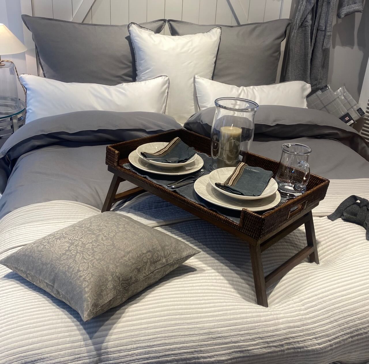 Diese schöne Tagesdecke von Lexington wird aus feiner Baumwolle gefertigt. Das dekorative Plaid ist angenehm weich im Gebrauch und besticht durch das schöne Streifenmuster in frischer weiß-grauer Optik. Die Rückseite hat das Streifenmuster in grau-weiß, so dass man dieses Plaid auch gut beidseitig verwenden kann.